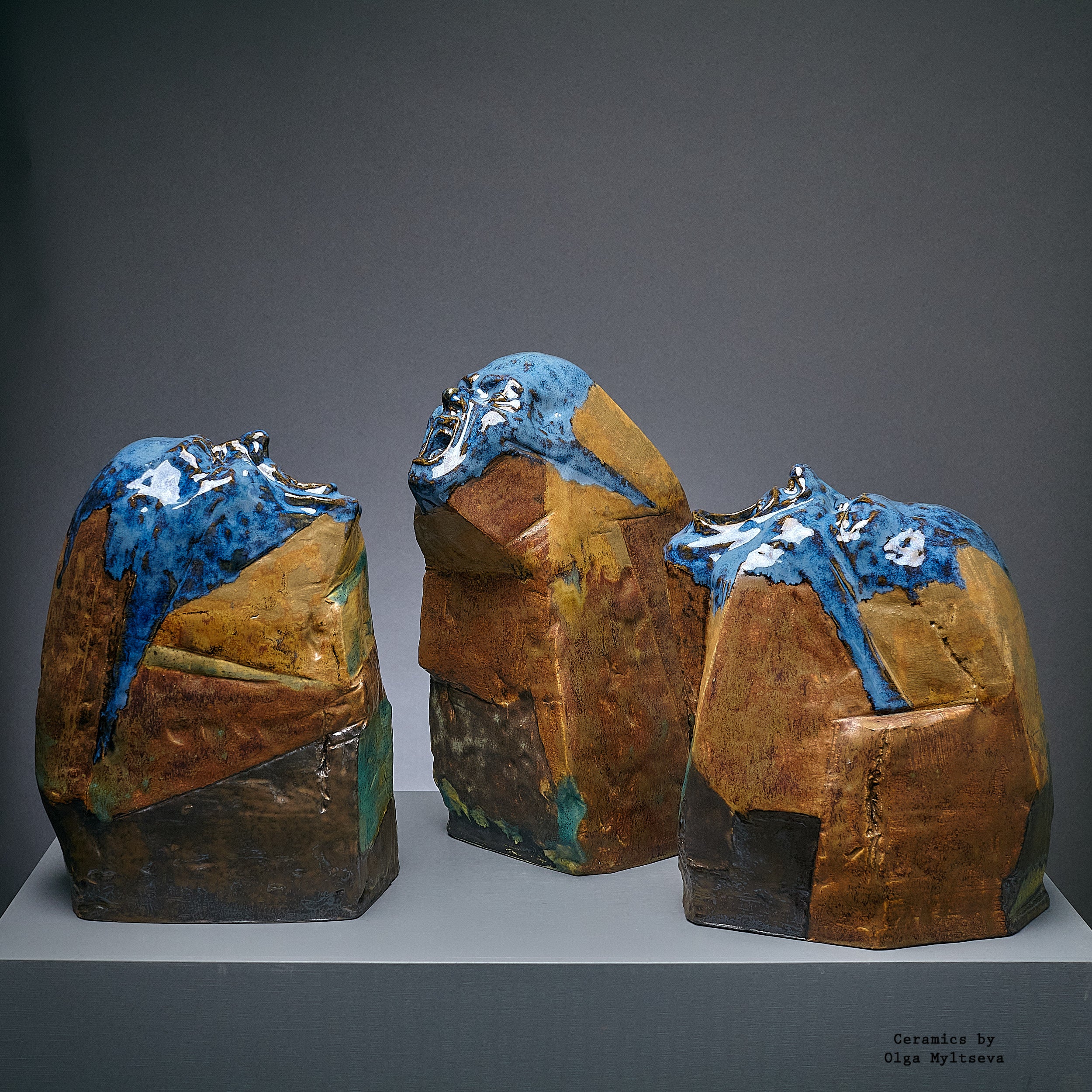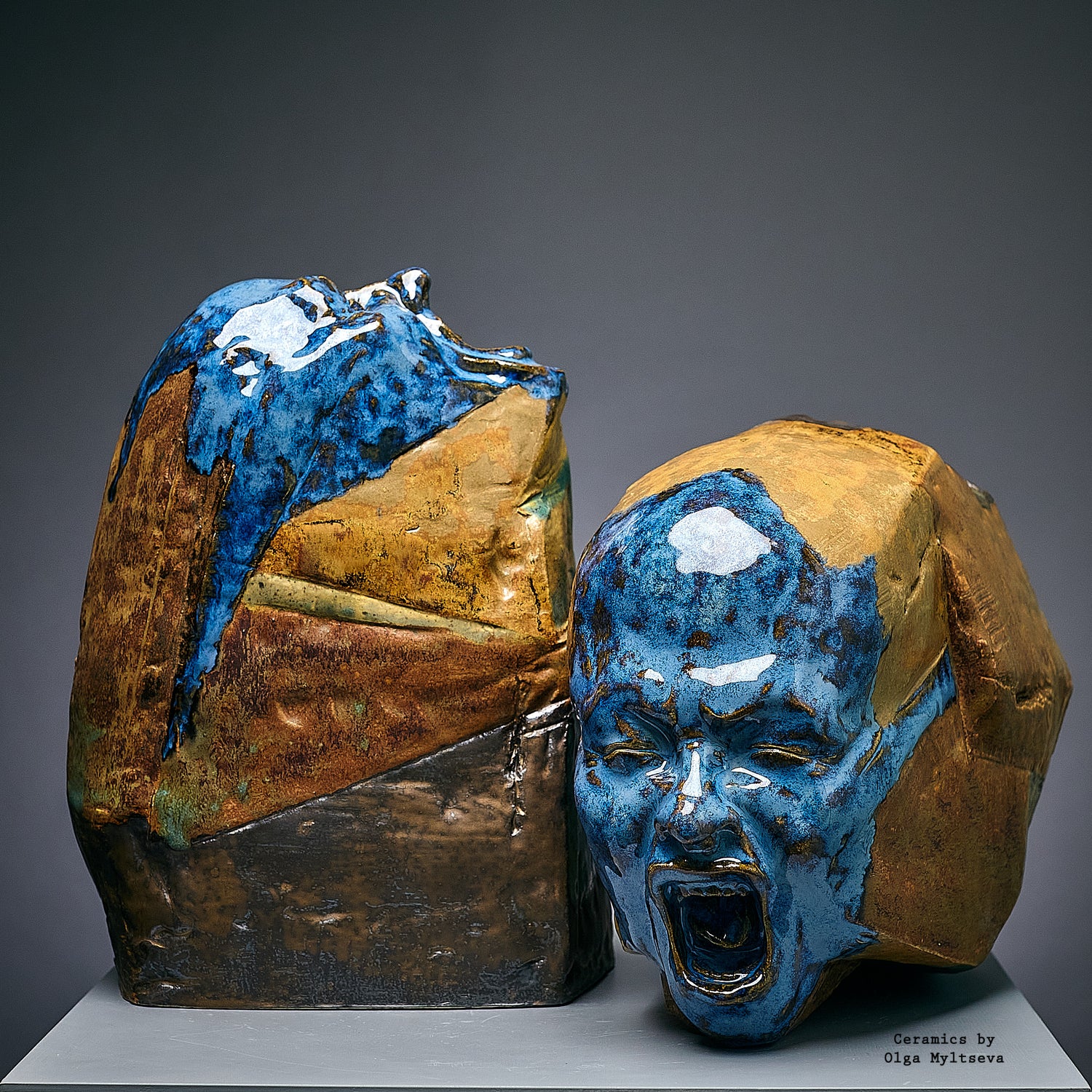 This sculpture series, created during the height of the pandemic, represents a deep philosophical reflection on those troubling and uncertain times when humanity found itself in a state of global fear and insecurity. "When we cry to the sky, it reflects on our faces" embodies the core concept of this work, which explores the idea of response and interaction between the human being and the surrounding world. The faces of the sculptures, depicted with distorted expressions, visualize the human cry directed to the heavens, searching for comfort, protection, or perhaps an explanation.