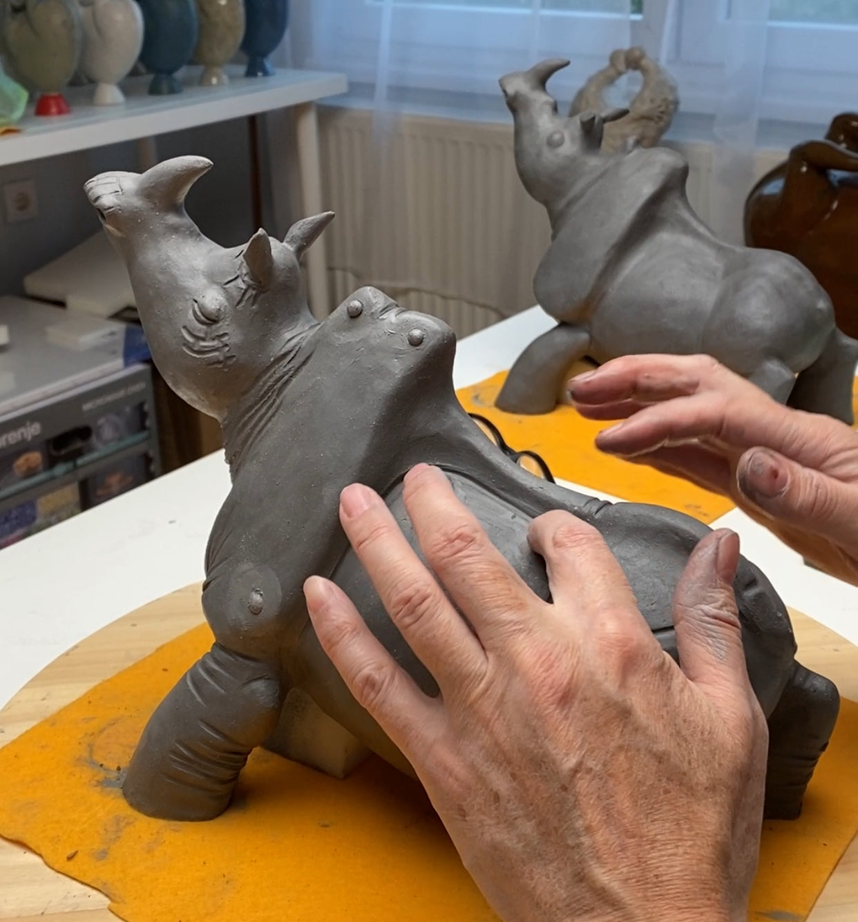 Each sculpture is crafted entirely by hand, without molds or templates—just clay, patience, and a genuine love for my craft. I pour warmth into every line and curve, striving to bring something alive through them. I believe that to give an object a soul, you need to establish a special connection with it. That’s why I carefully work on every detail, filling each Rhino with uniqueness, character, and spirit that I hope you will feel too.