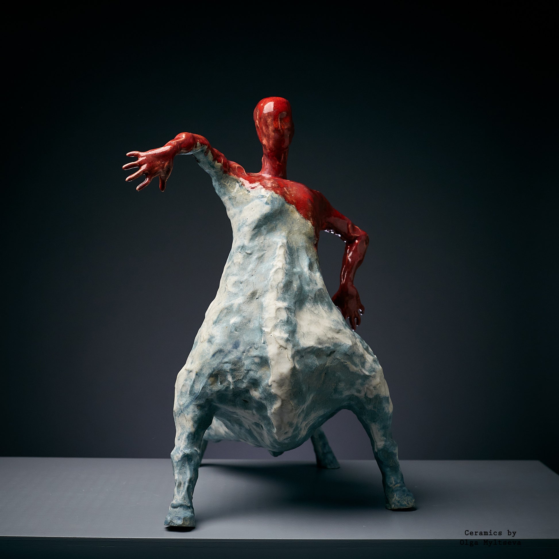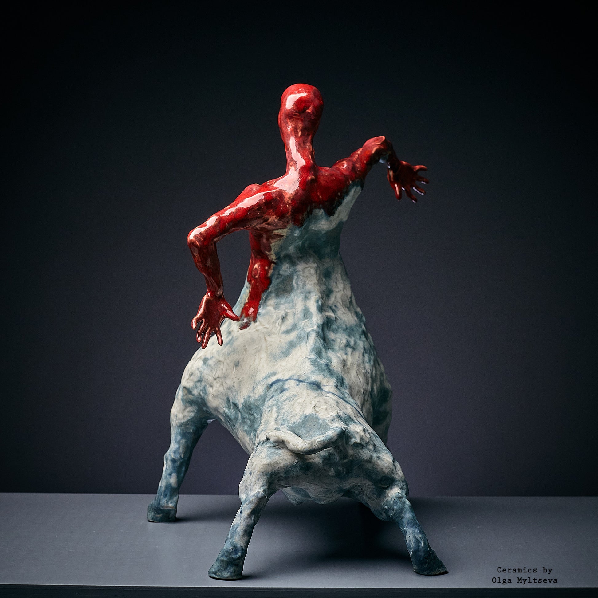 "Corrida" has the power to enliven a room, infusing it with a sense of strength and passion. It’s ideal for living rooms, offices, or workspaces, where it can stand as a symbol of inner struggle and power. The contrast between red and blue in the sculpture not only creates an accent but also draws the eye, inviting viewers to return to it time and time again.