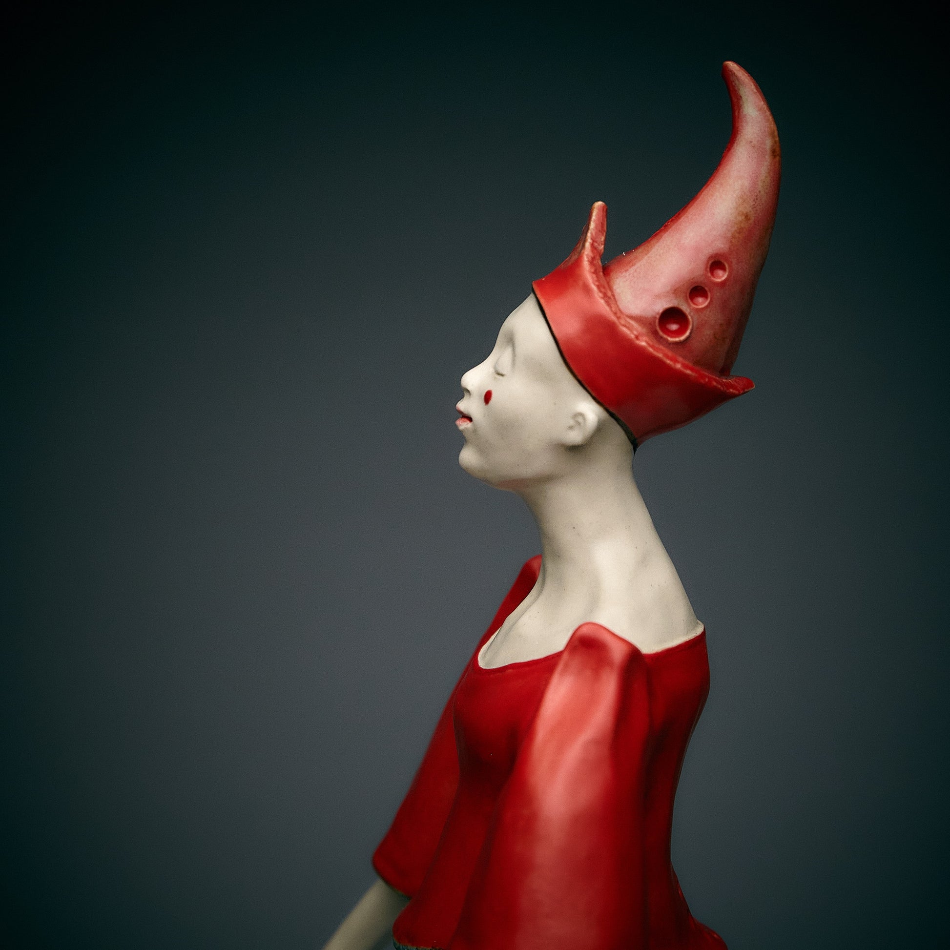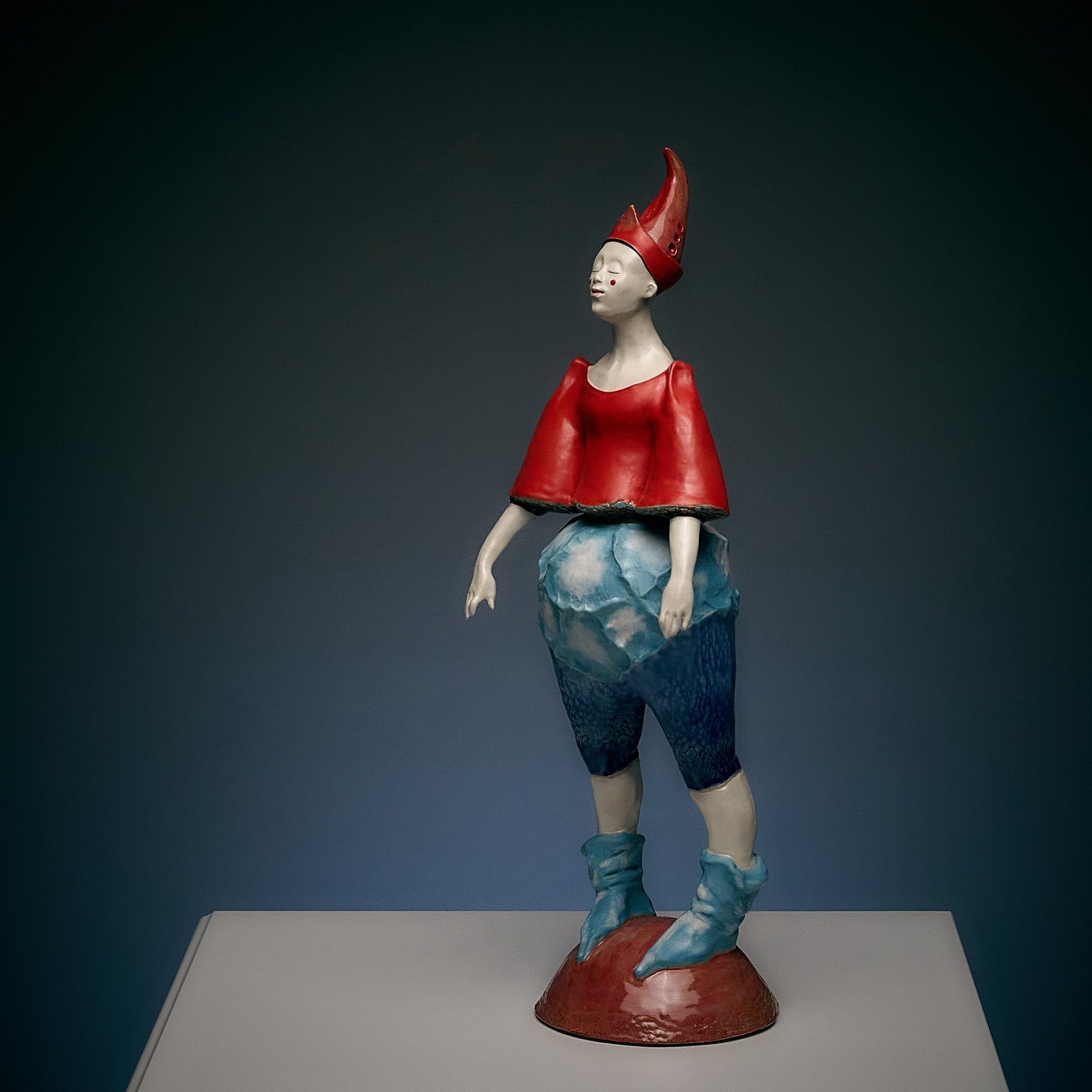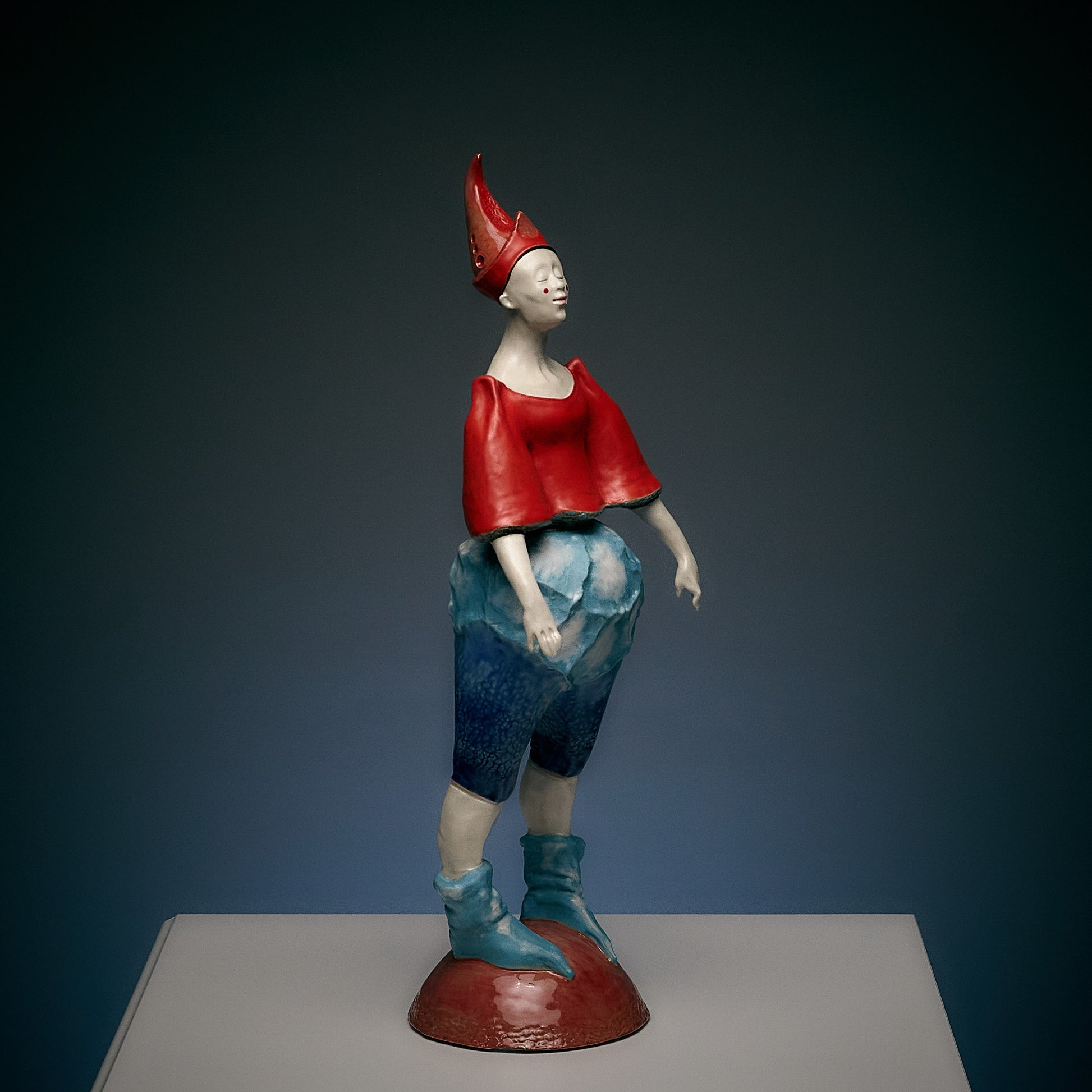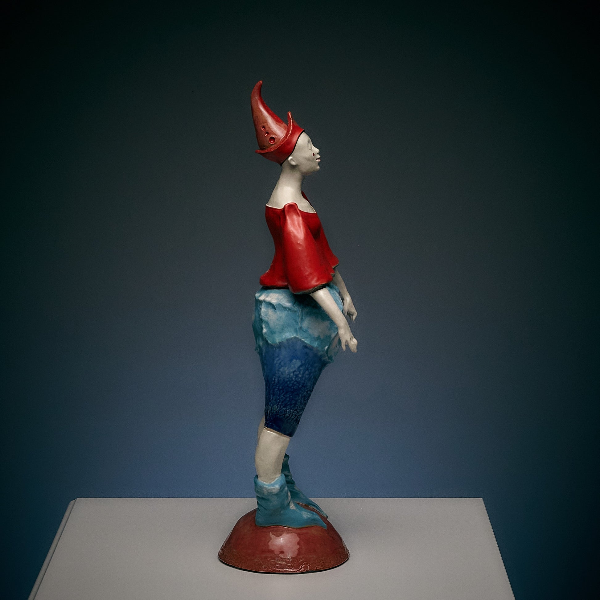 The sculpture Dreams is an image of a girl absorbed in her fantasies, in a fragile state where reality and dreams intertwine. Her fantastical outfit, bright colors, and flowing forms symbolize her escape from the weight of the real world. She seems to float, yet this moment of weightlessness is so fleetingly fragile — only a moment separates her from returning to reality.