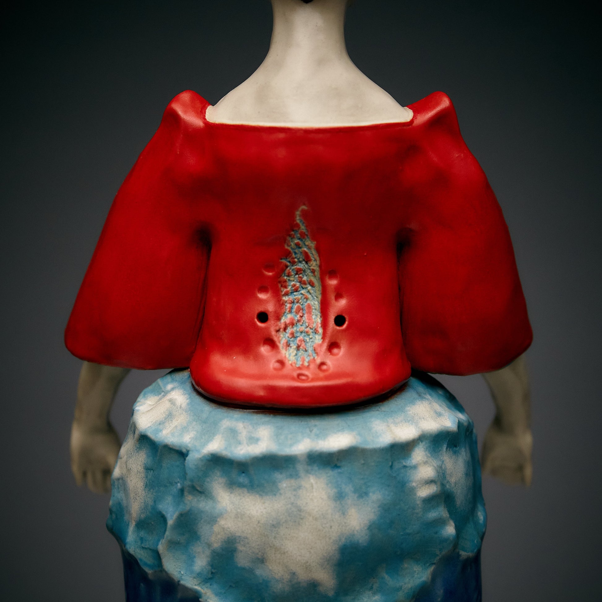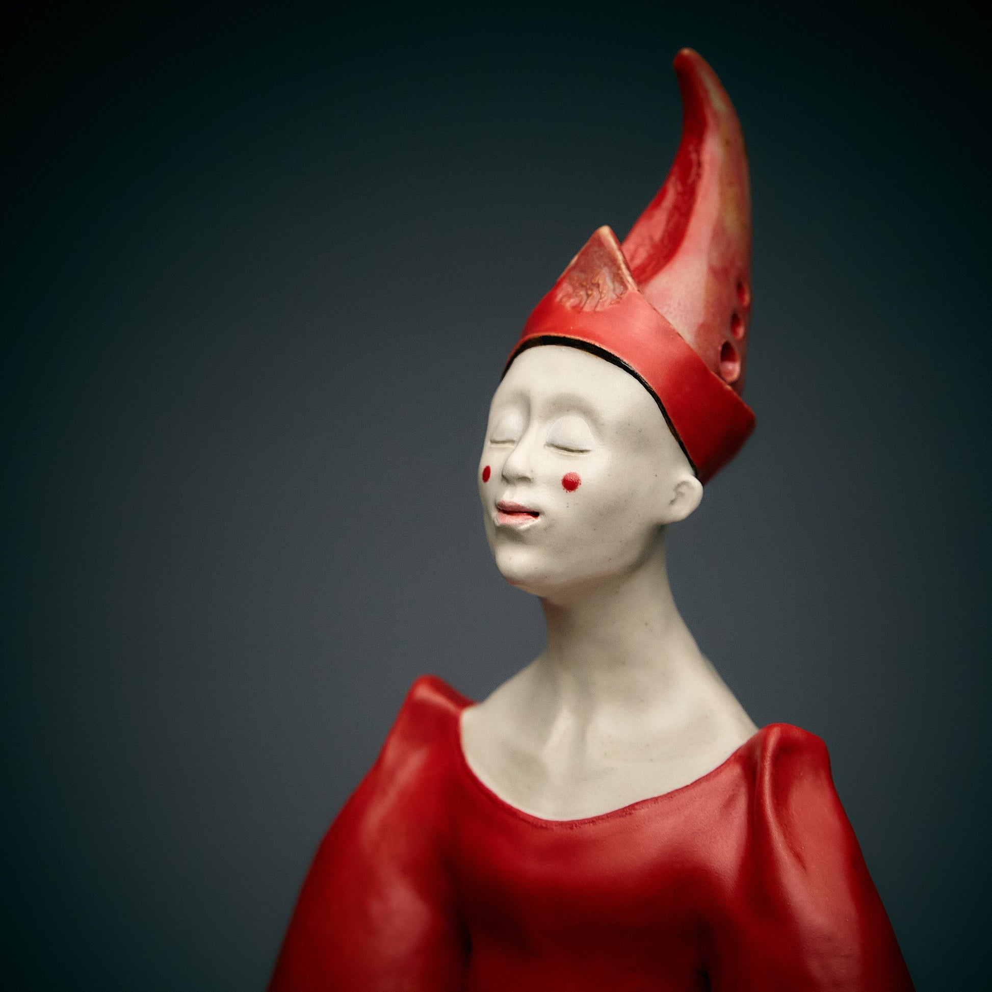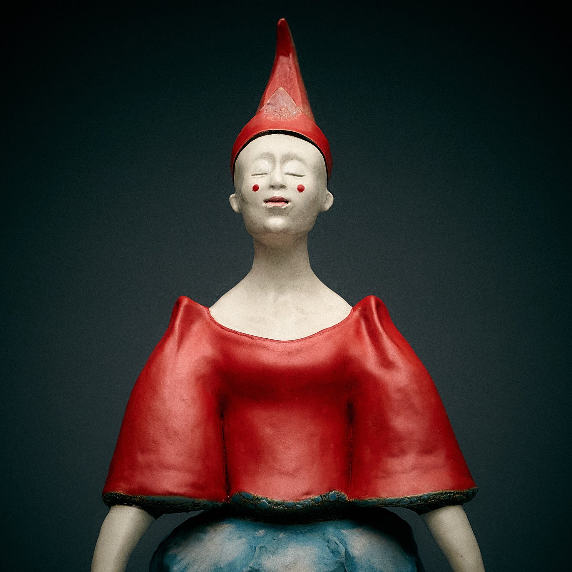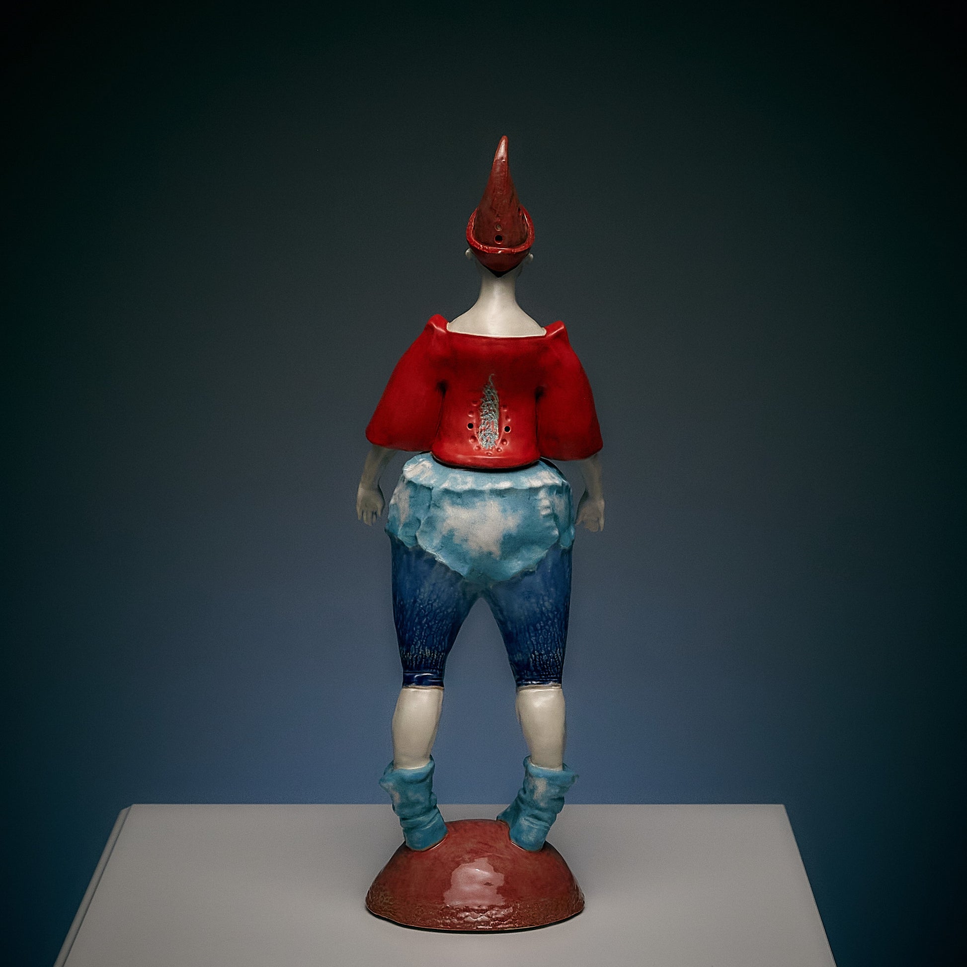 The sculpture Dreams is an image of a girl absorbed in her fantasies, in a fragile state where reality and dreams intertwine. Her fantastical outfit, bright colors, and flowing forms symbolize her escape from the weight of the real world. She seems to float, yet this moment of weightlessness is so fleetingly fragile — only a moment separates her from returning to reality.