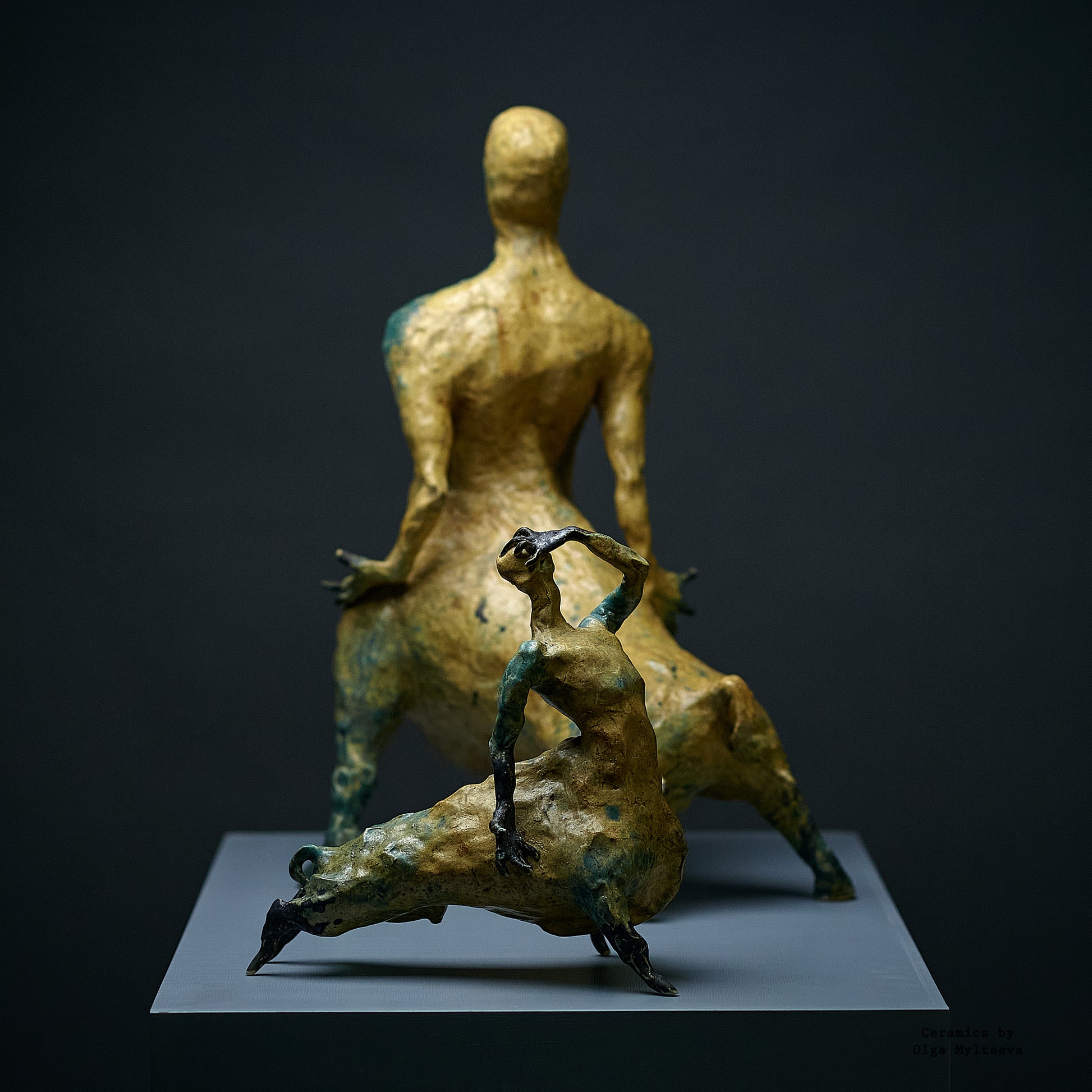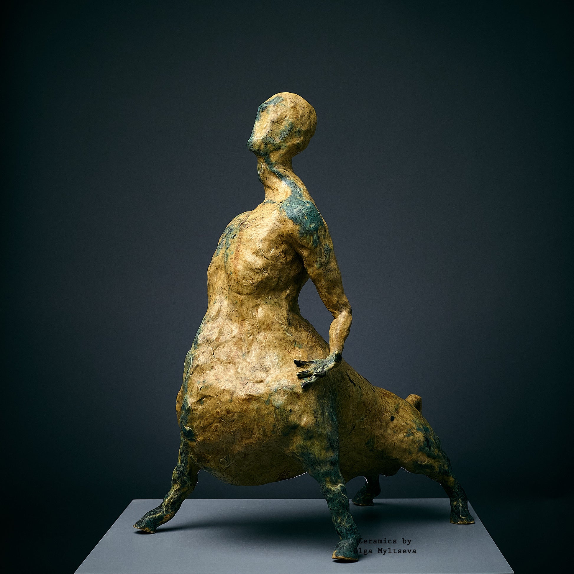 The sculpture explores the concept of duality, blurring the line between opposing forces. Here, the bull and the toreador, the aggressor and the defender, are inseparably intertwined—two halves of a single whole. The viewer is left to ponder: who are they in this eternal struggle? The piece vividly portrays a fragile balance that lays bare the essence of inner conflict—a constant push and pull between raw instinct and rational thought, unrestrained power and deliberate control.