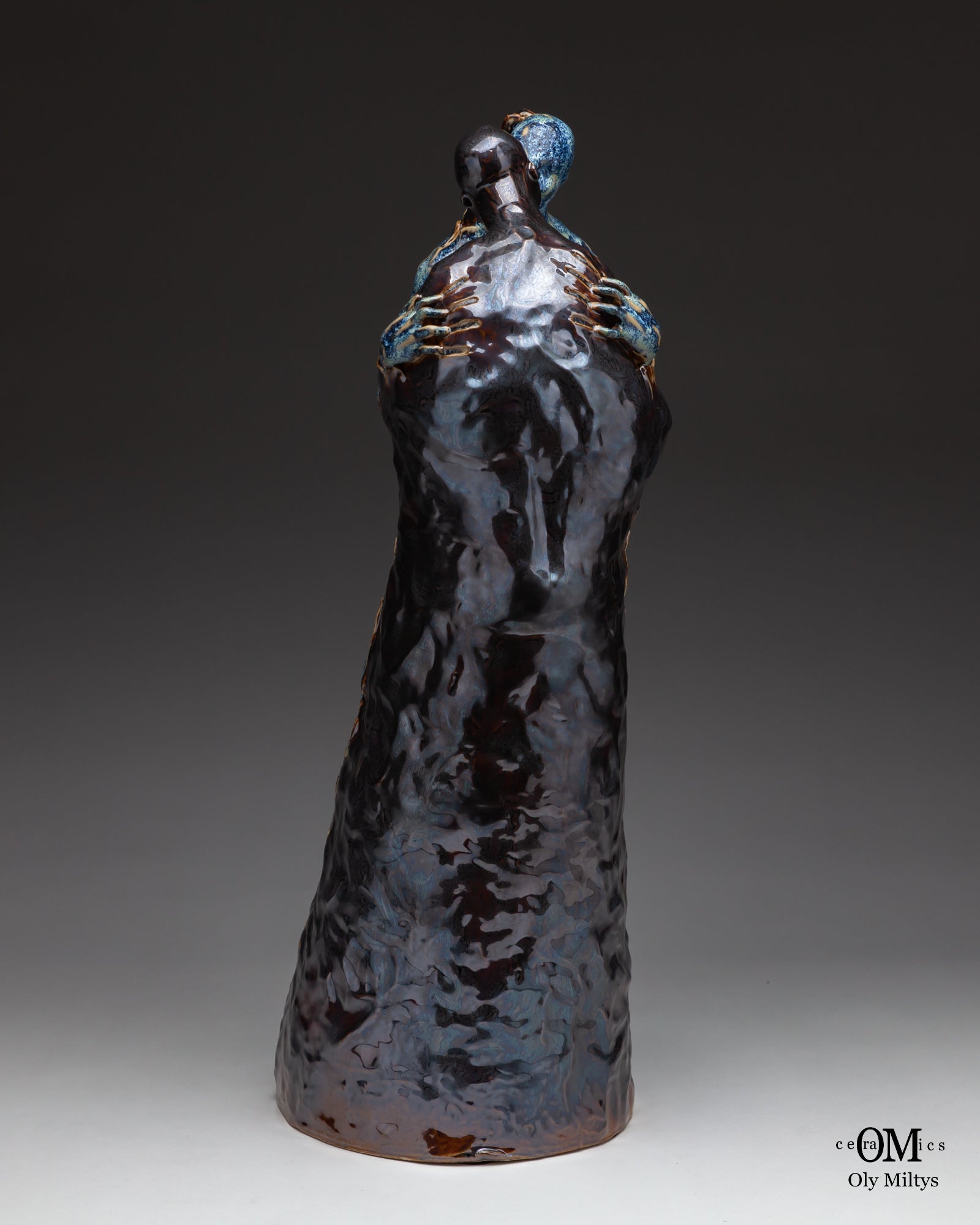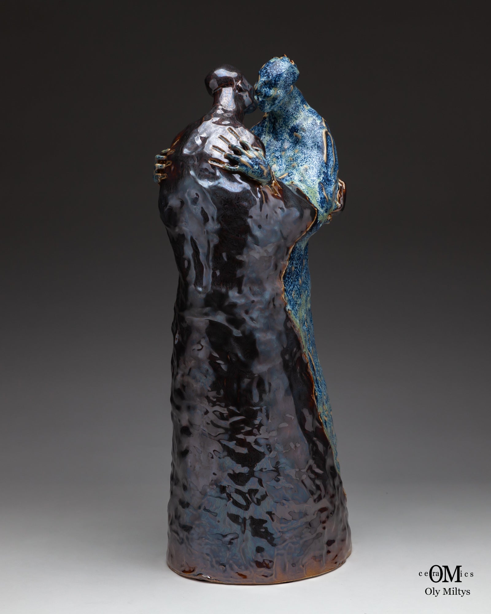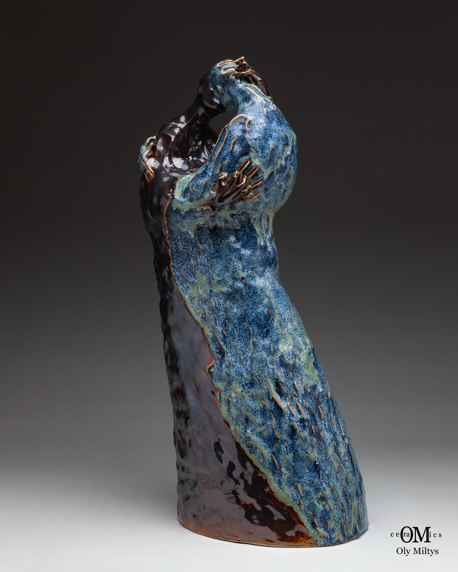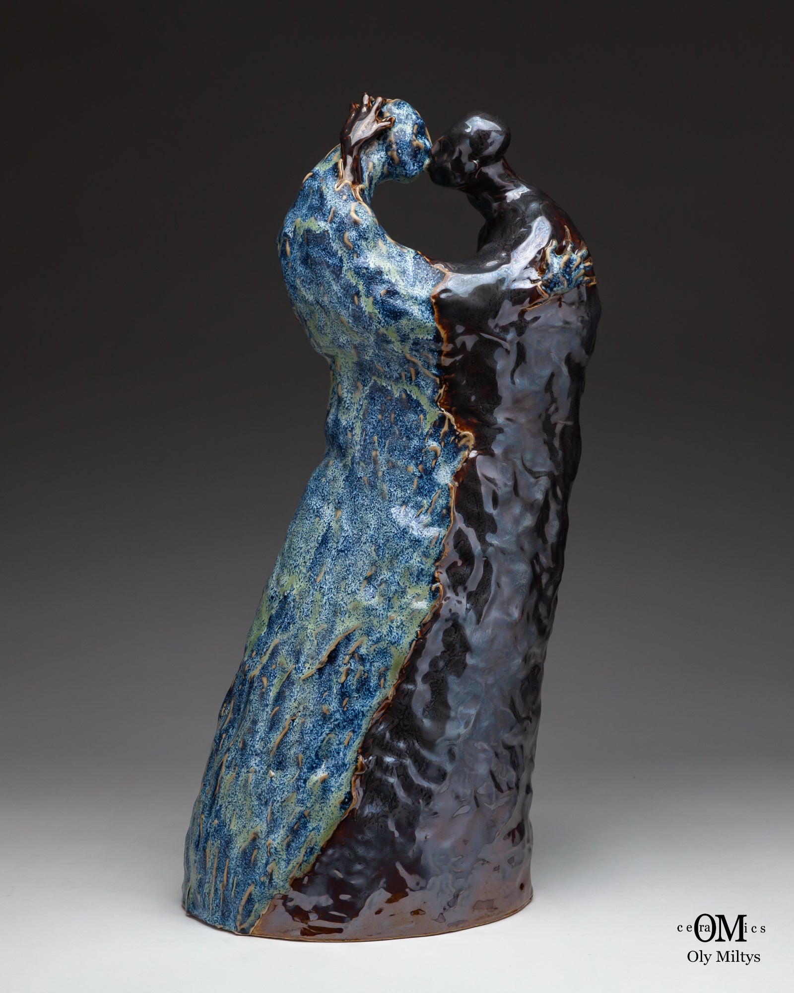 One figure, glazed in cool blues with touches of green, feels like a flowing current: fluid, elusive. The other — deep and dark as night. They don’t merge, but they touch — gently, densely, with quiet intensity. It’s not a collision, but a dissolving of boundaries. Intimacy not as a flash, but as a calm surrender.