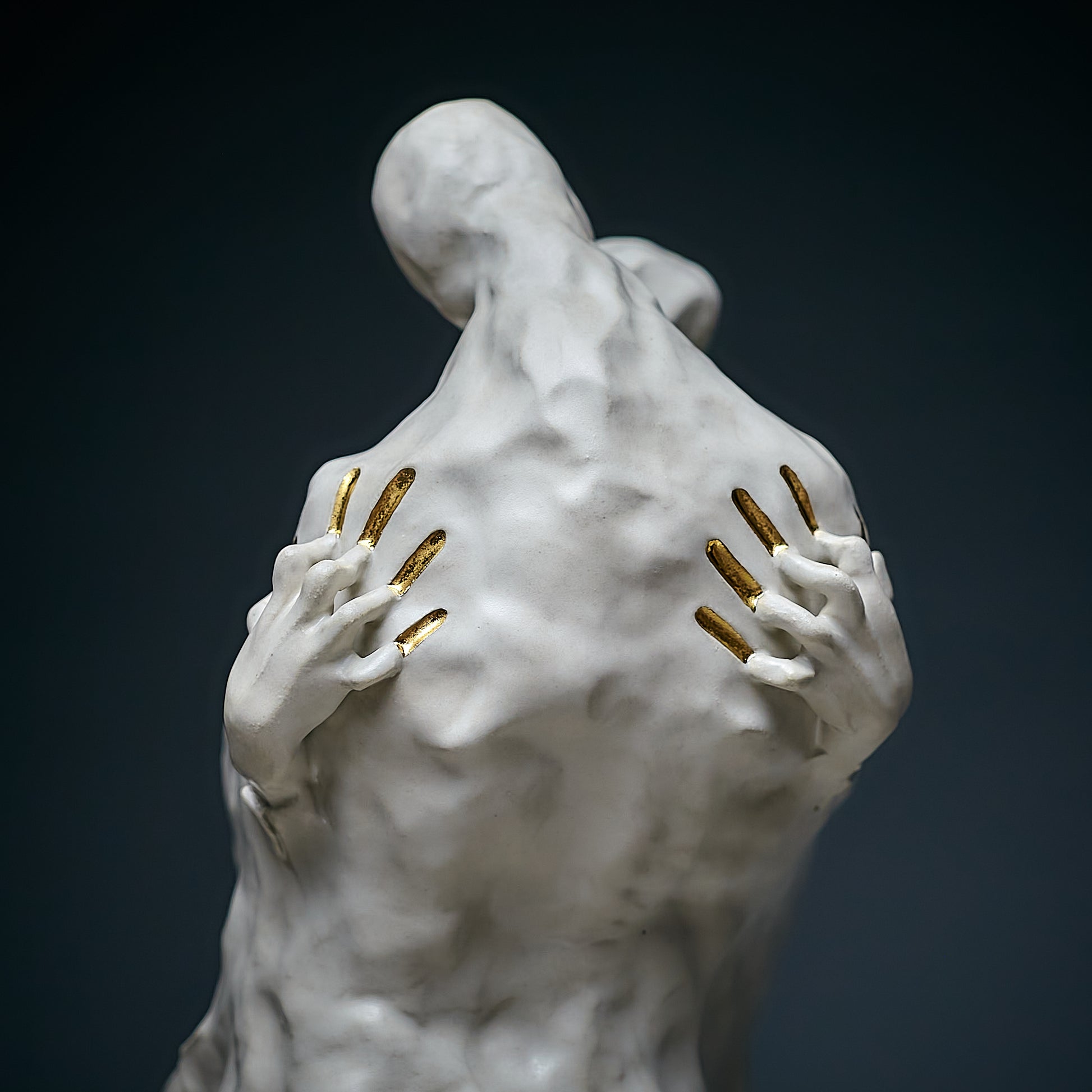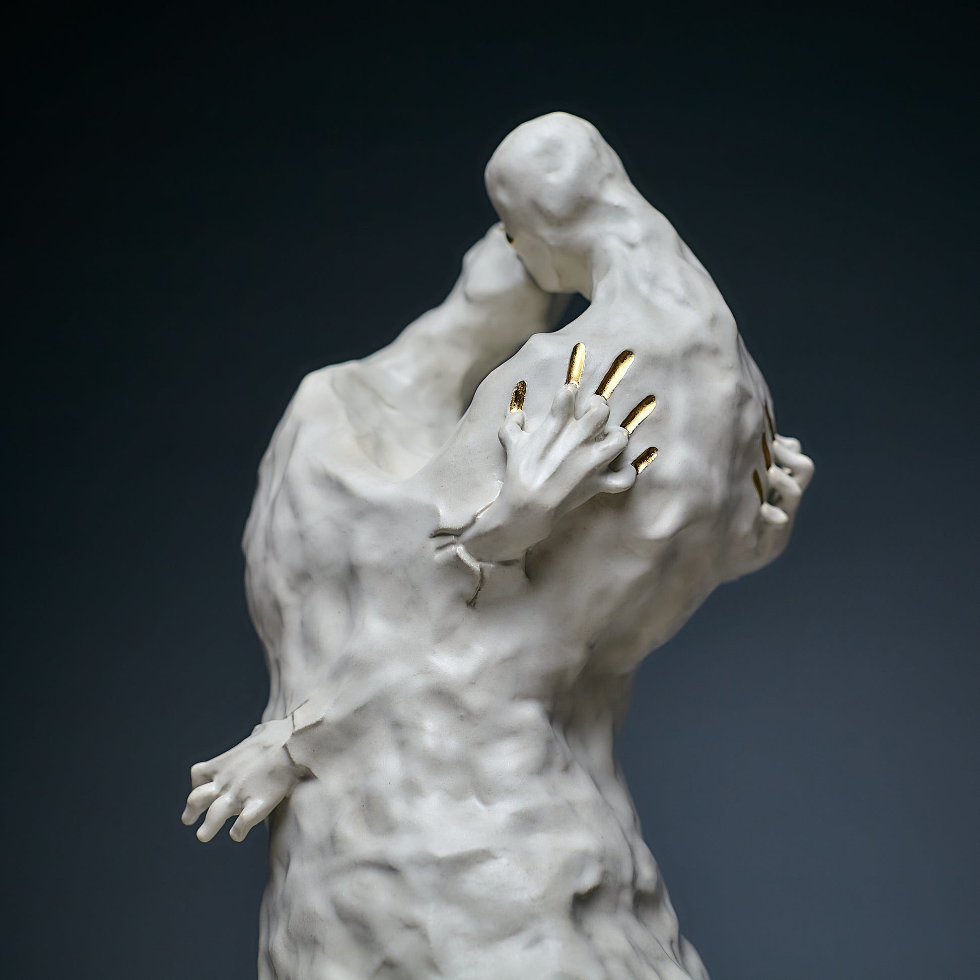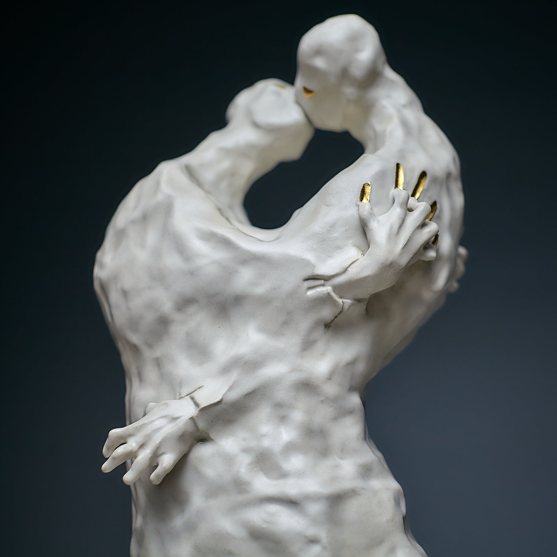 Passion is always an inner contradiction, and it is this contradiction that makes our lives truly unique and beautiful. This sculpture, handcrafted, captures the power of passion that lives within each of us. The artist uses white and natural gold to symbolize both the value and purity of these emotions, as well as the light side of human relationships. Through smooth forms and delicate details, the work embodies the duality of passion — its beauty and depth — encouraging viewers to reflect on the inner conflicts that make up the essence of the human experience.