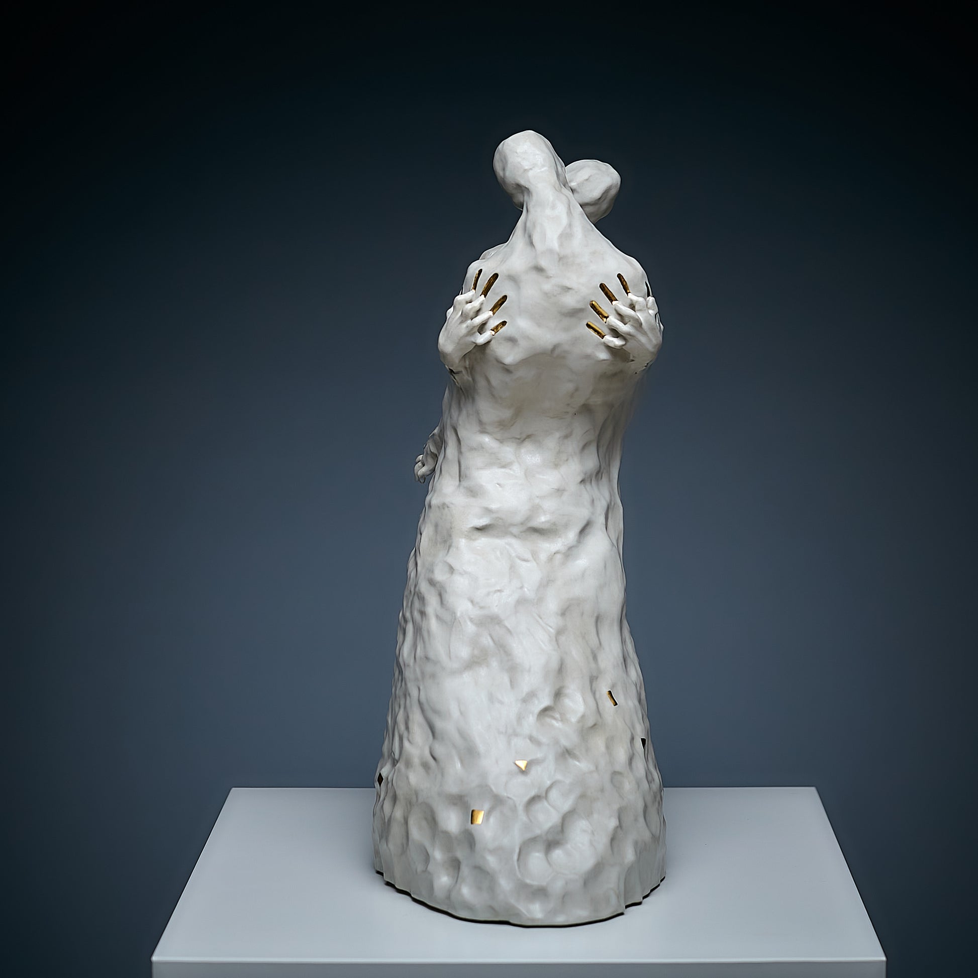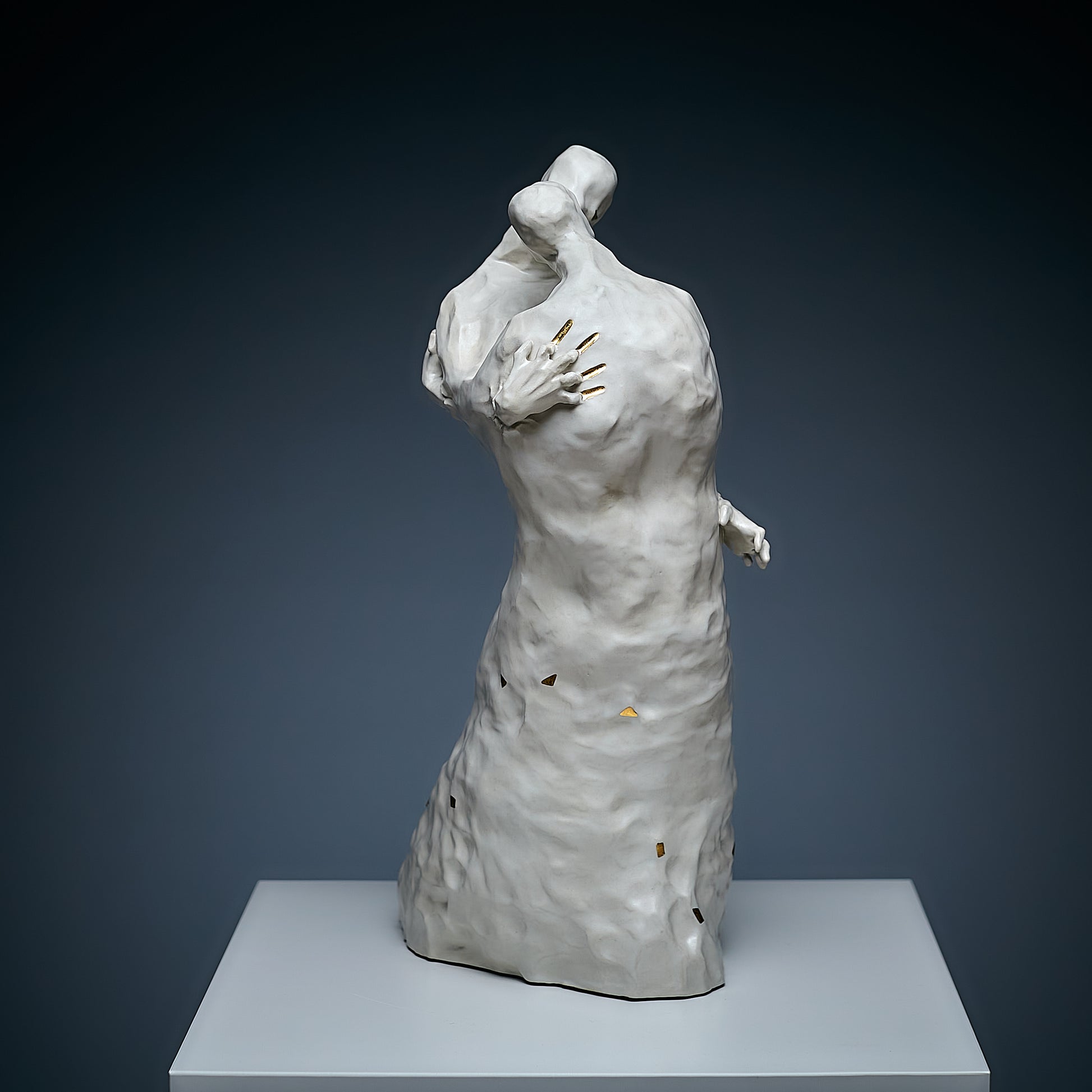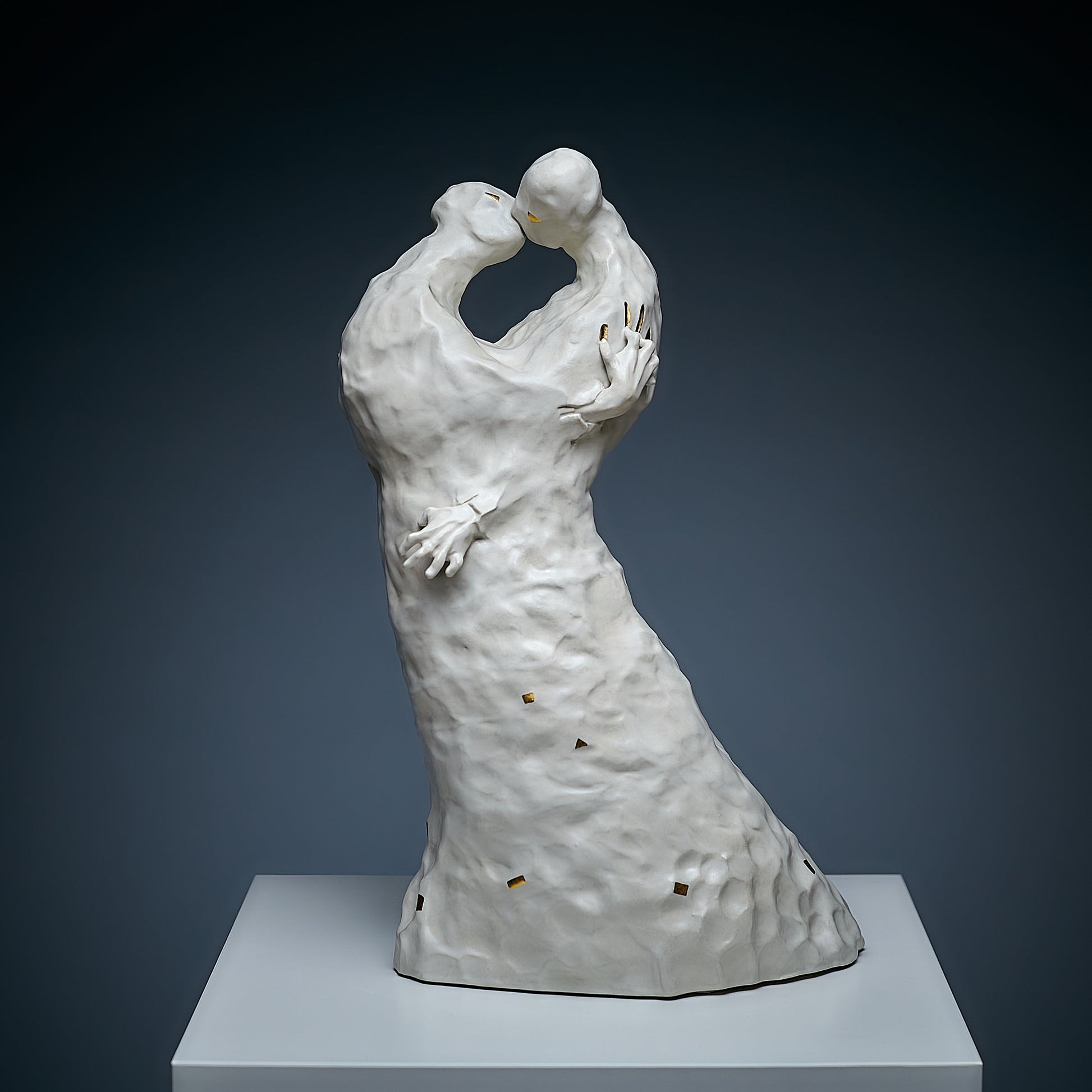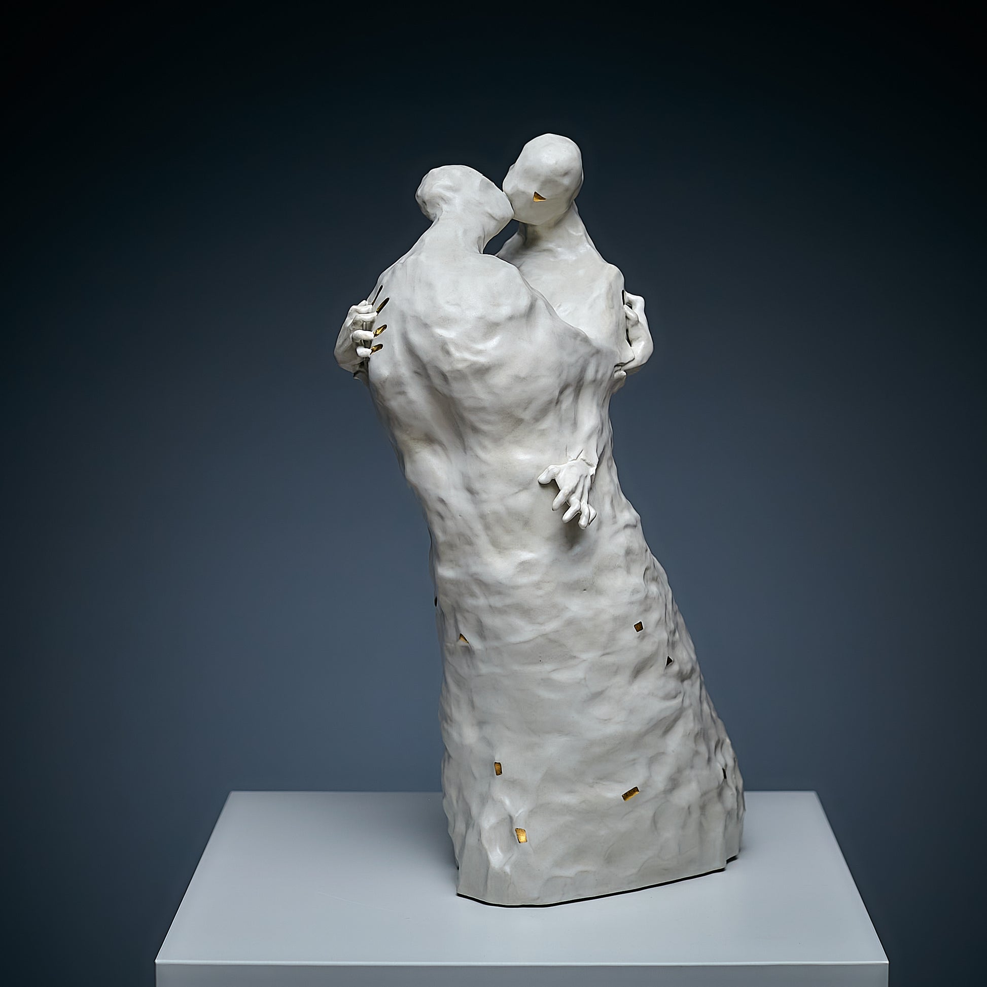 Passion is always an inner contradiction, and it is this contradiction that makes our lives truly unique and beautiful. This sculpture, handcrafted, captures the power of passion that lives within each of us. The artist uses white and natural gold to symbolize both the value and purity of these emotions, as well as the light side of human relationships. Through smooth forms and delicate details, the work embodies the duality of passion — its beauty and depth — encouraging viewers to reflect on the inner conflicts that make up the essence of the human experience.