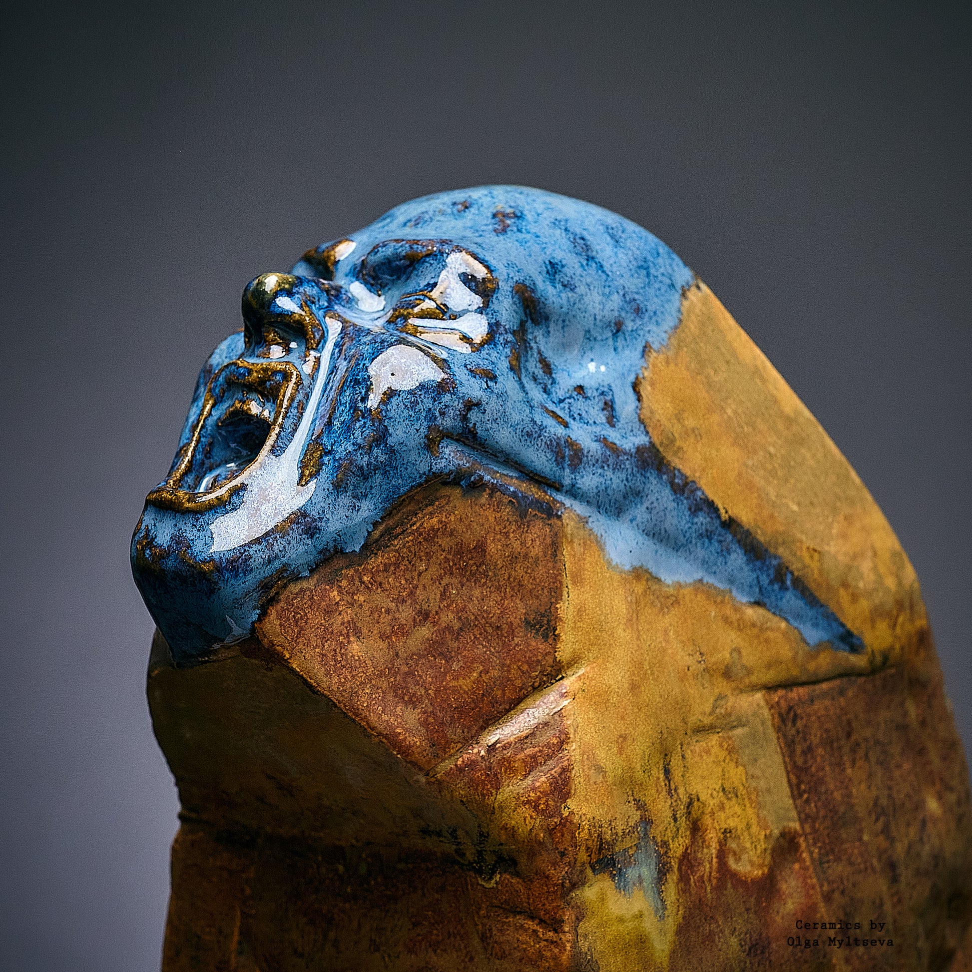 Once the sculpture is fully dried, it undergoes its first firing, which hardens the clay into bisque—a state that’s durable but porous enough to accept glazes. After this firing, I apply several layers of glaze by hand, carefully blending colors to achieve the desired depth and texture. Each glaze layer reacts differently under high heat, creating unique finishes, but this also adds risk: the ceramic can crack or warp, which would mean beginning the entire process anew.
