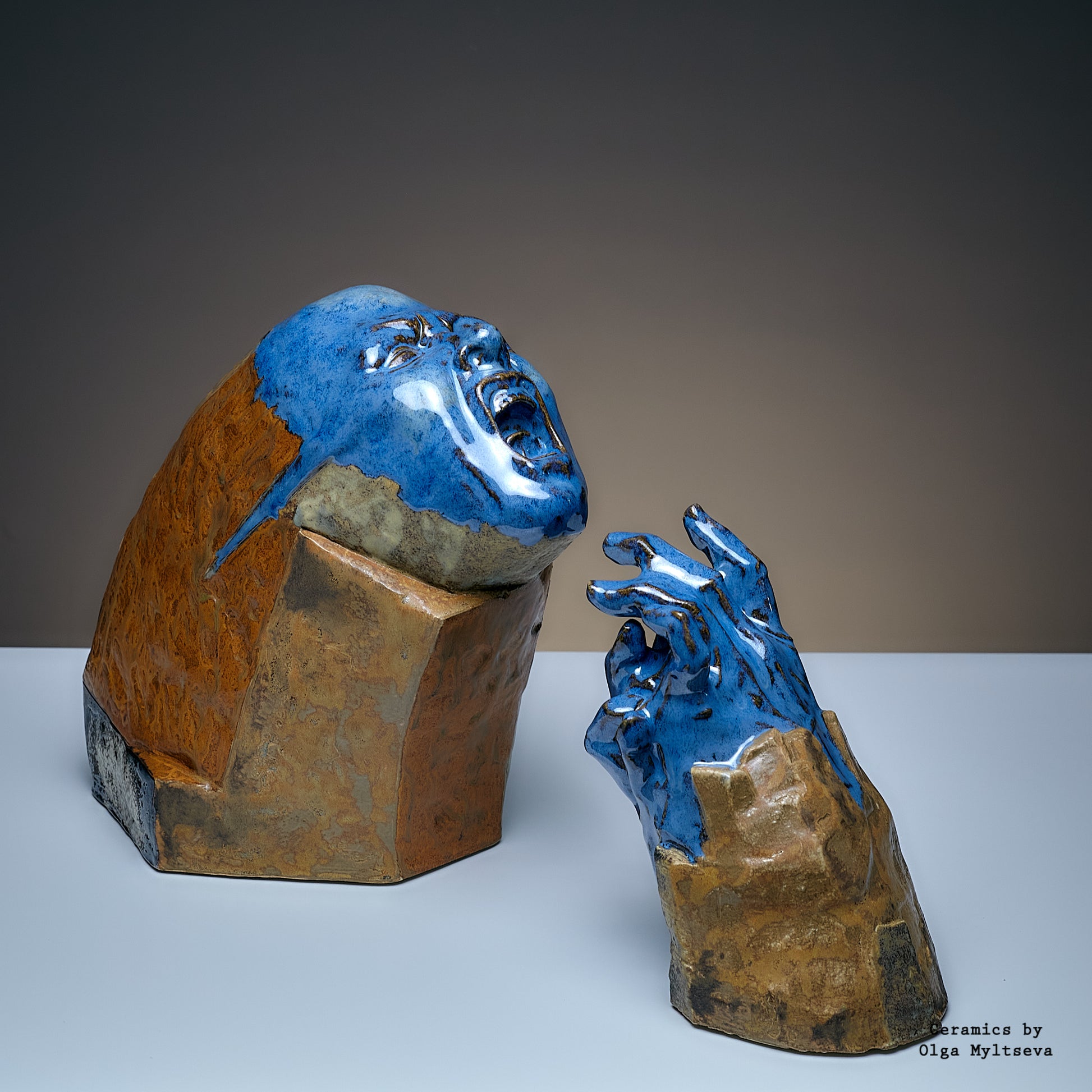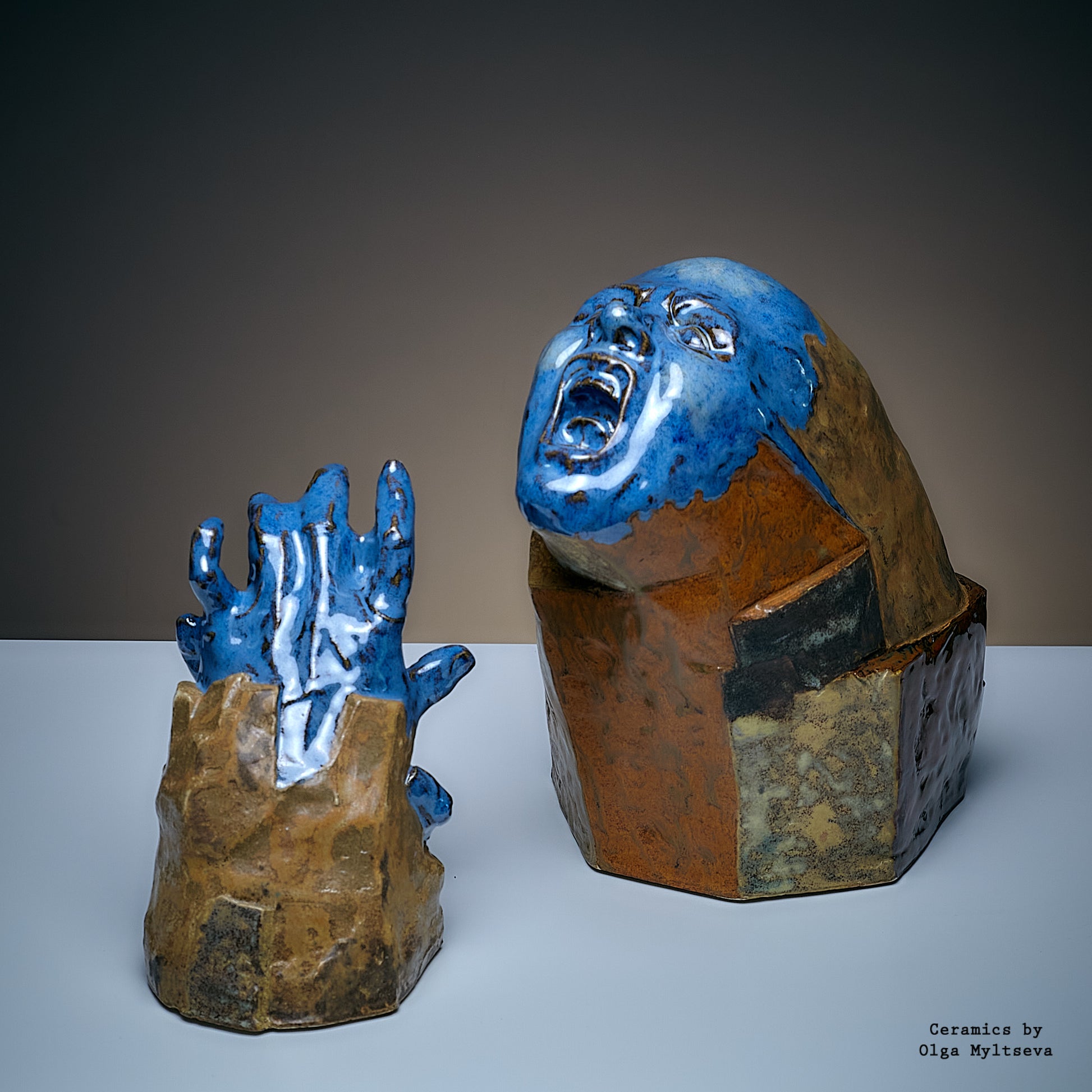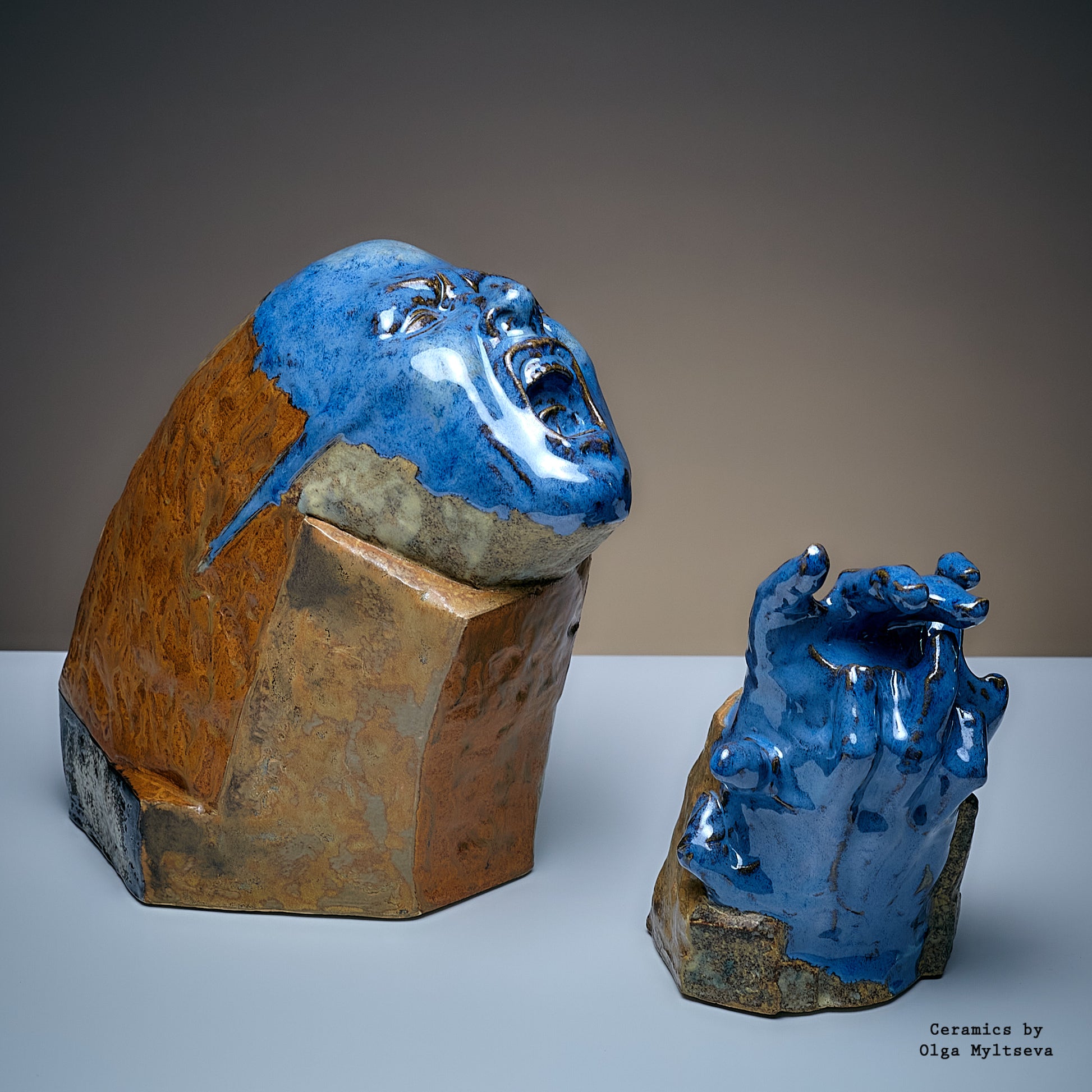 Once the sculpture is fully dried, it undergoes its first firing, which hardens the clay into bisque—a state that’s durable but porous enough to accept glazes. After this firing, I apply several layers of glaze by hand, carefully blending colors to achieve the desired depth and texture. Each glaze layer reacts differently under high heat, creating unique finishes, but this also adds risk: the ceramic can crack or warp, which would mean beginning the entire process anew.