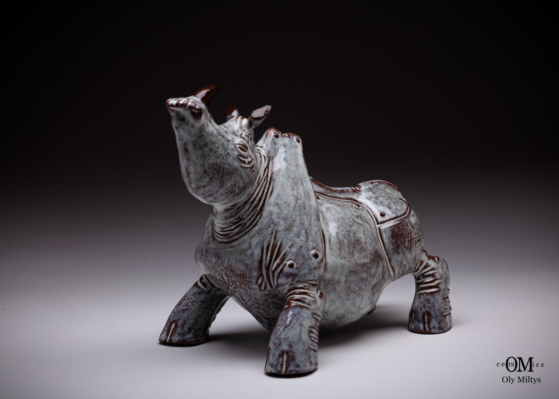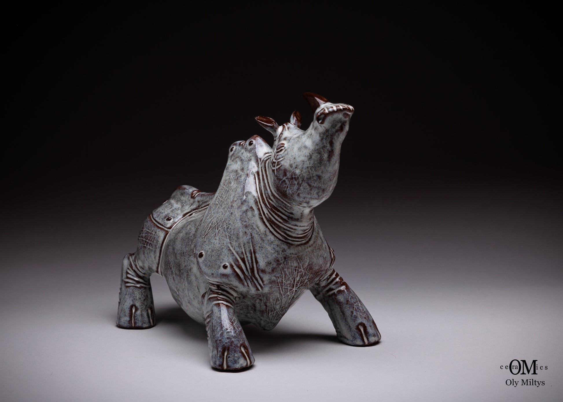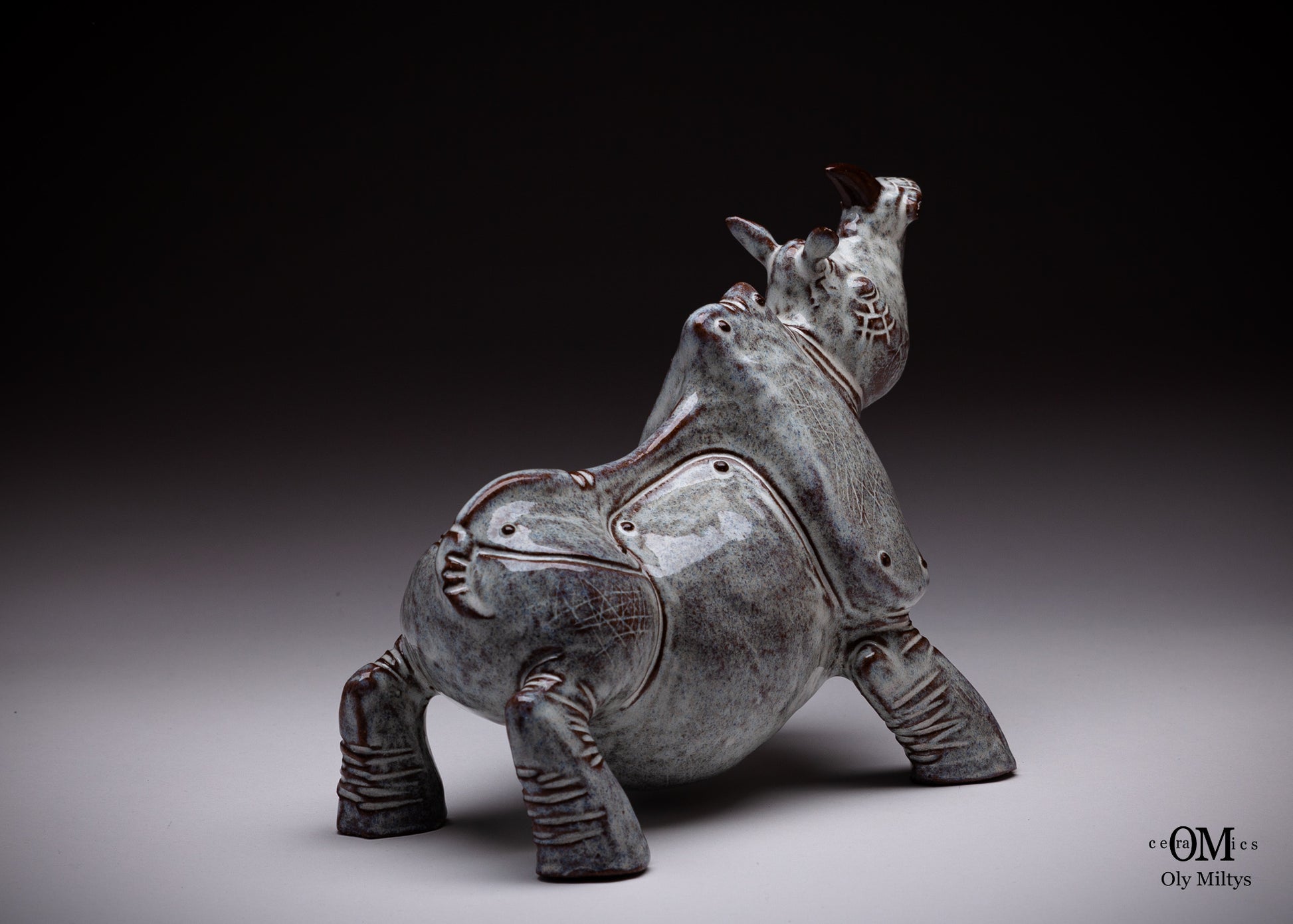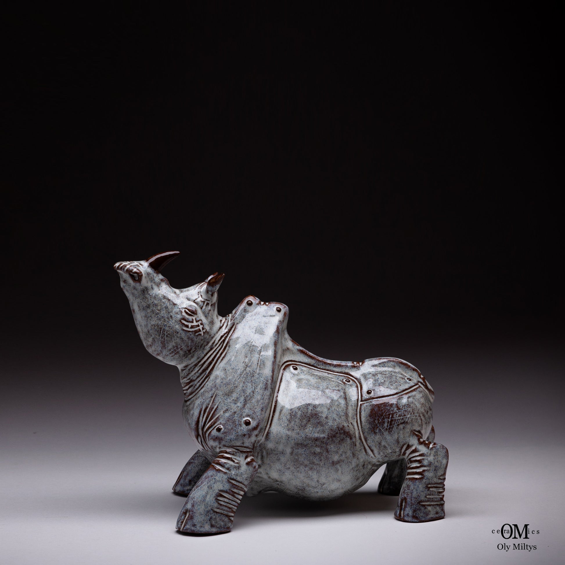 This ceramic rhinoceros sculpture is part of a unique series that explores the image of ancient power and vulnerability. The figure of the rhinoceros, one of the most powerful and monumental animals, is presented here in a form that combines strength with the delicate, almost ephemeral quality of ceramics.