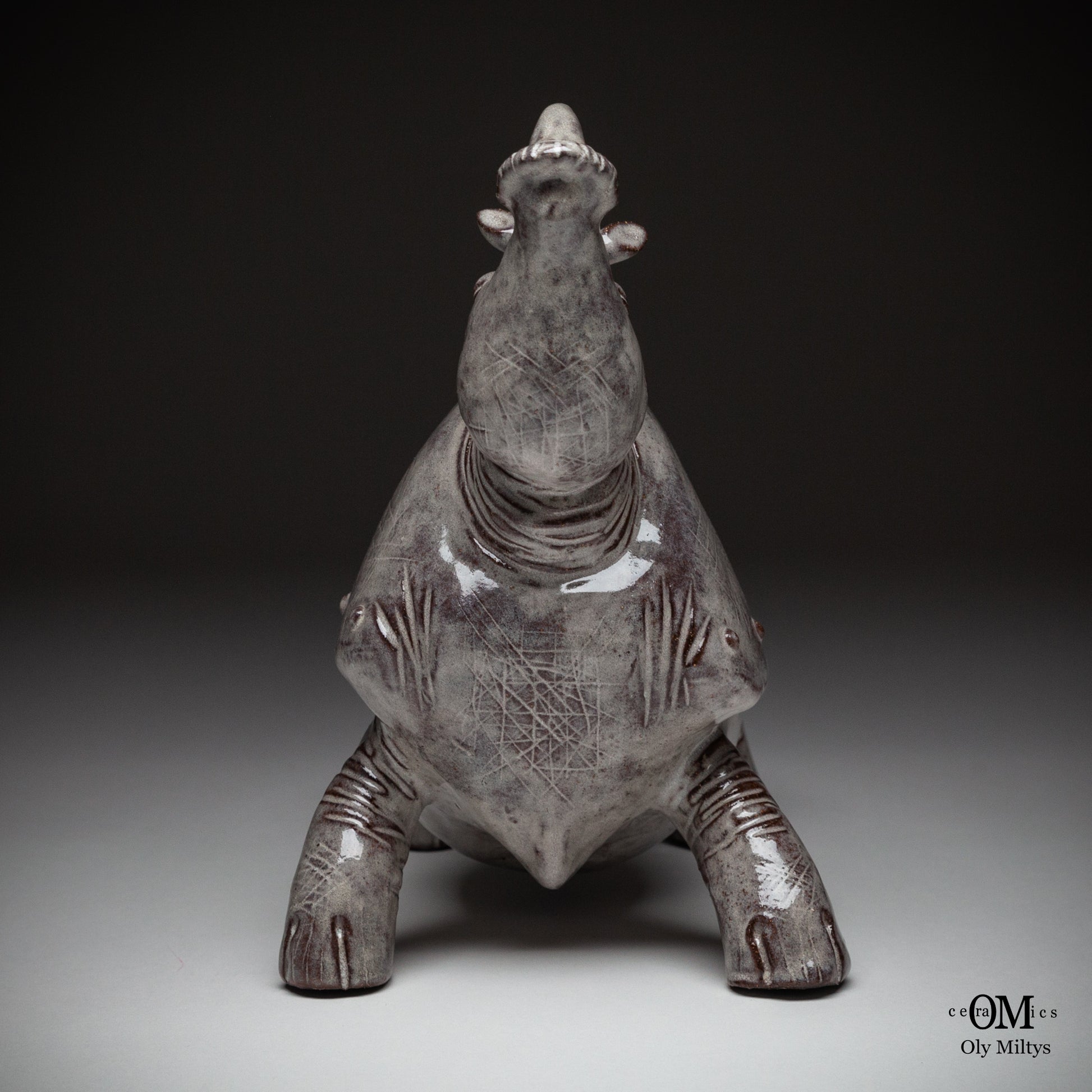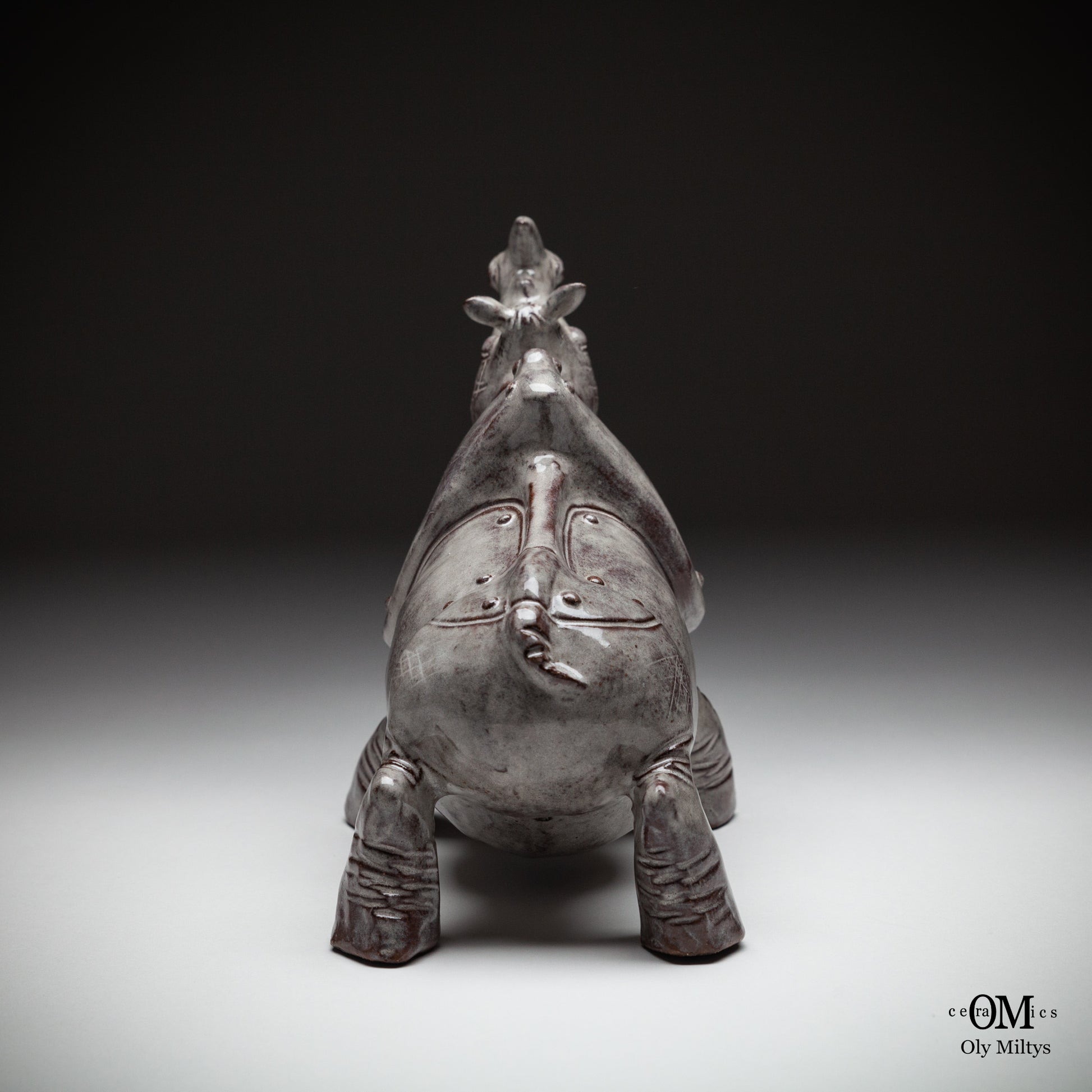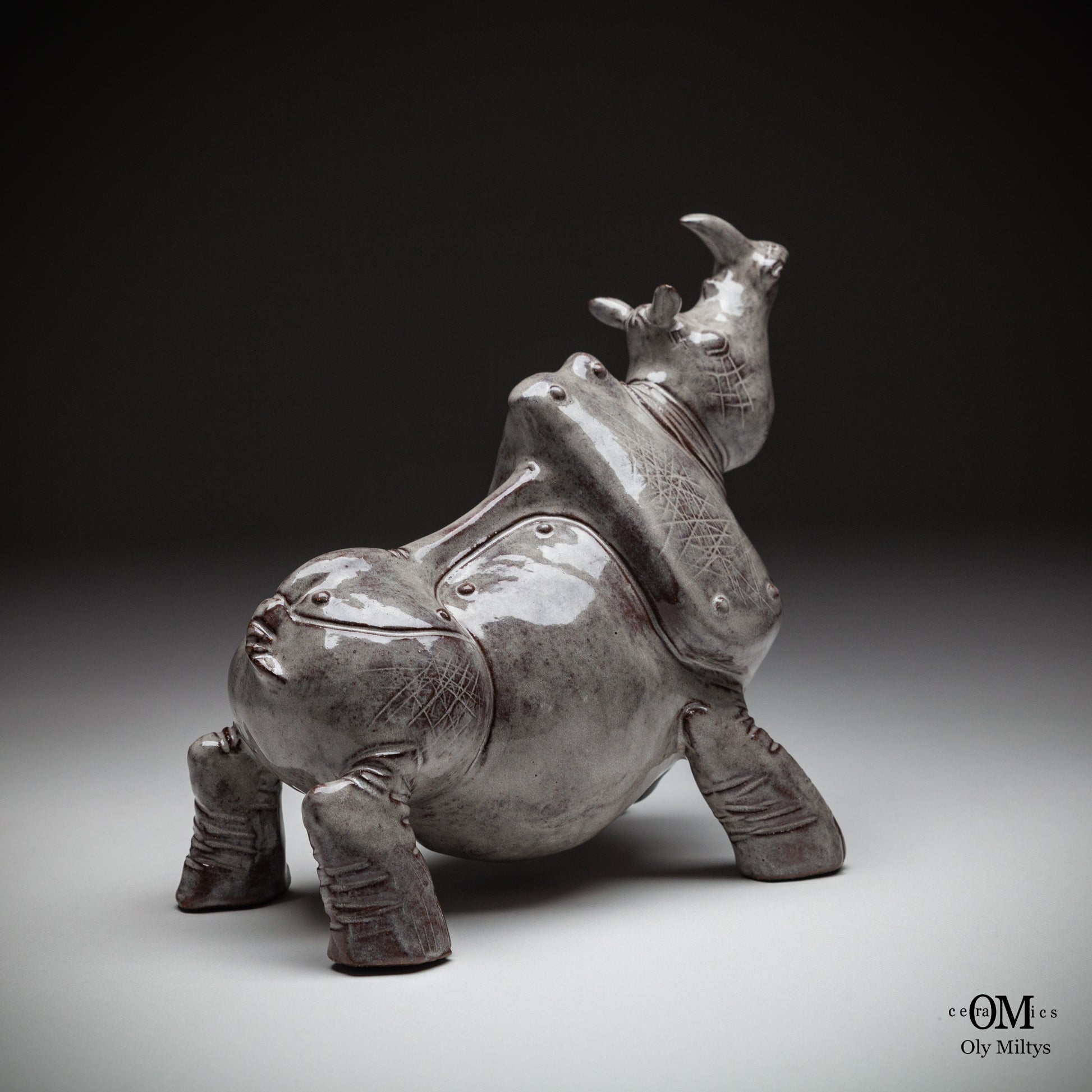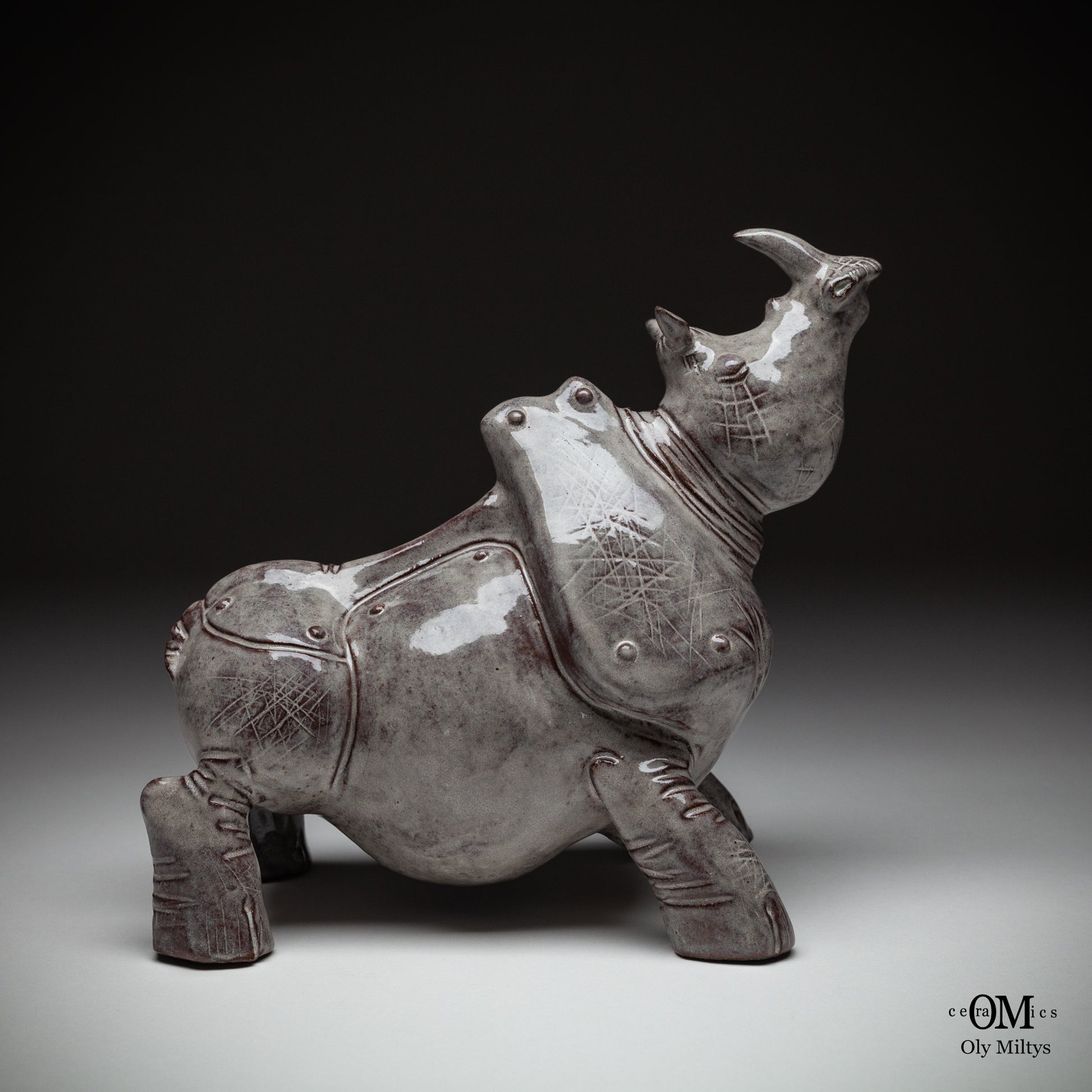 This ceramic rhinoceros sculpture is part of a unique series that explores the image of ancient power and vulnerability. The figure of the rhinoceros, one of the most powerful and monumental animals, is presented here in a form that combines strength with the delicate, almost ephemeral quality of ceramics.