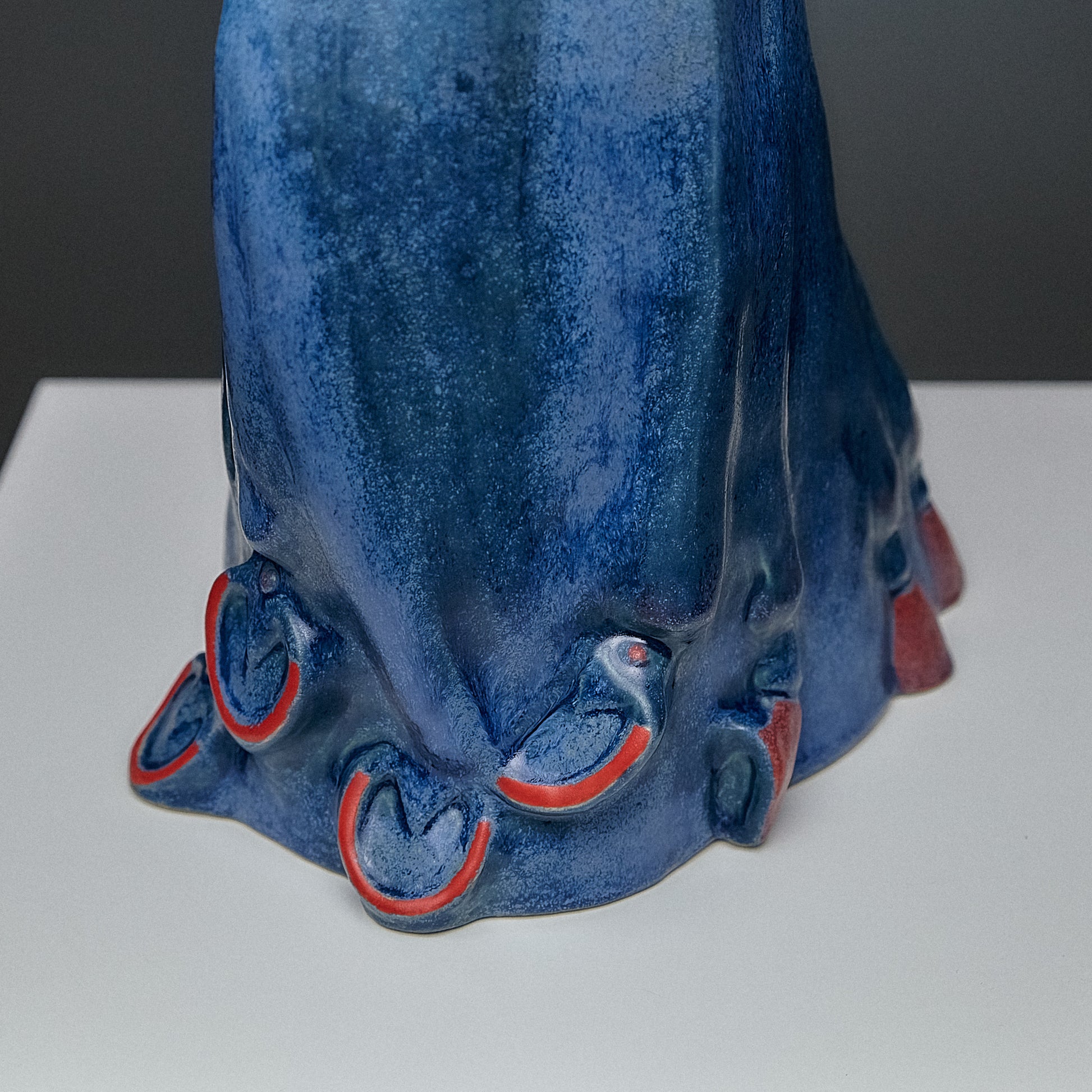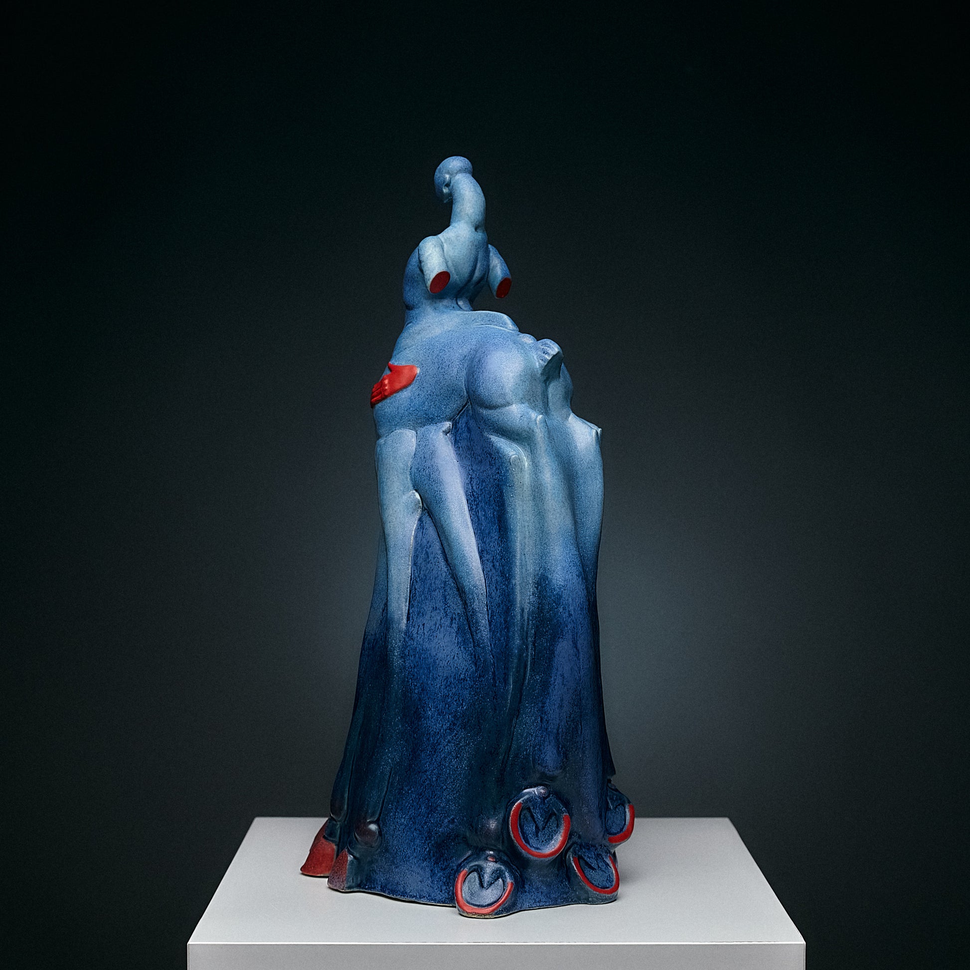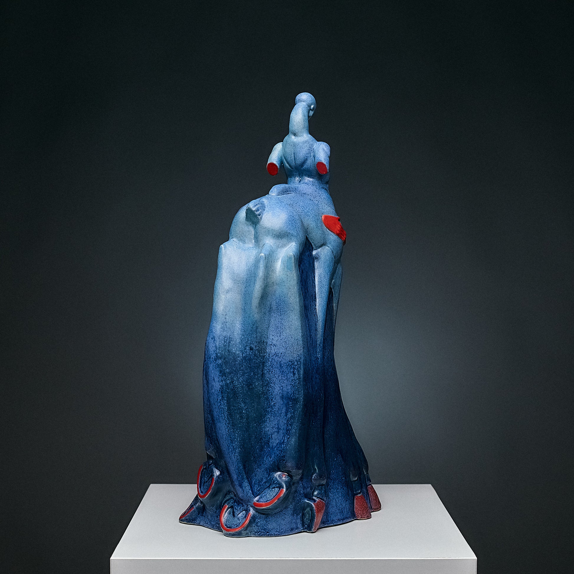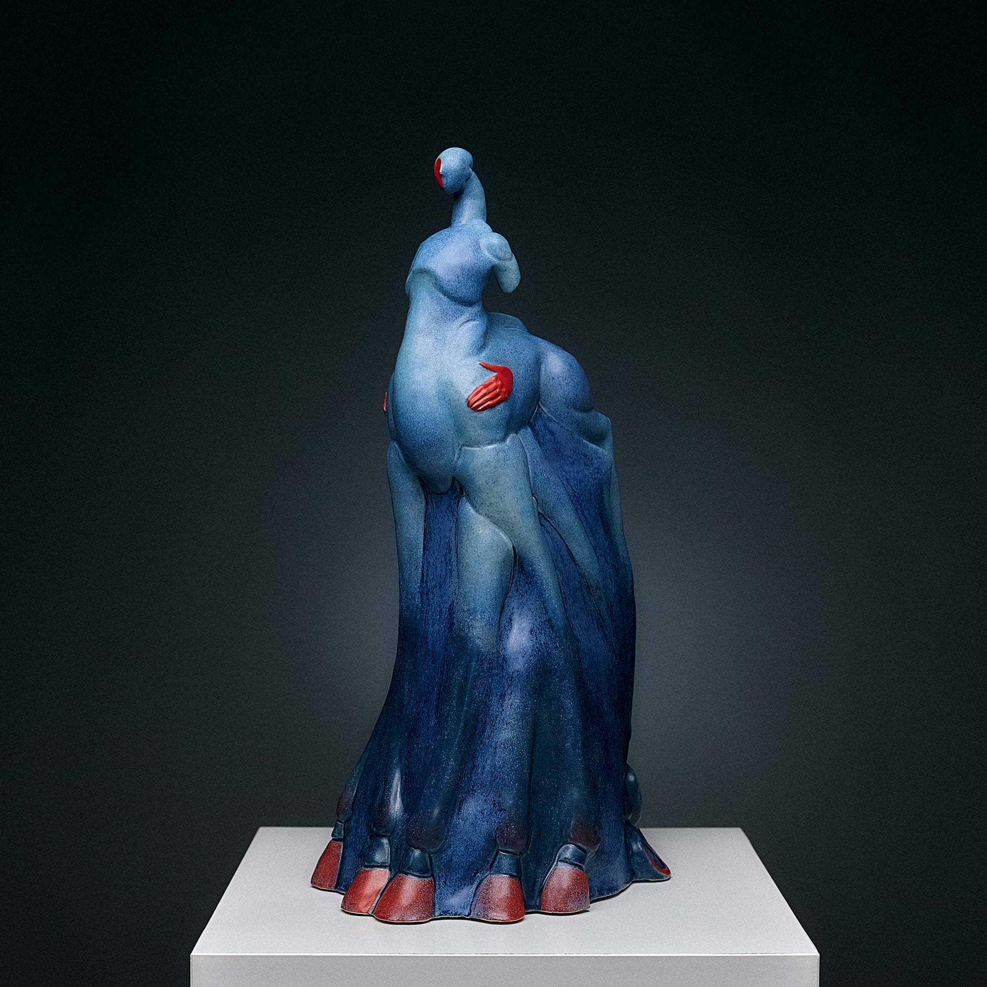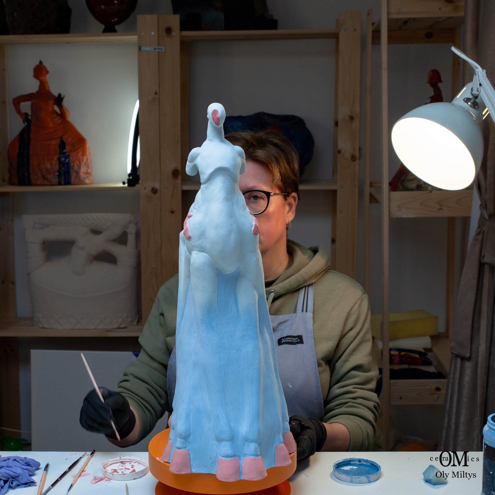 I then move on to the painting stage. I carefully select colors that harmonize with the material and reflect the intended concept of the piece. Once the glaze is applied, the sculpture is placed back in the kiln for a second firing at the same temperature of 1250°C (2282°F).