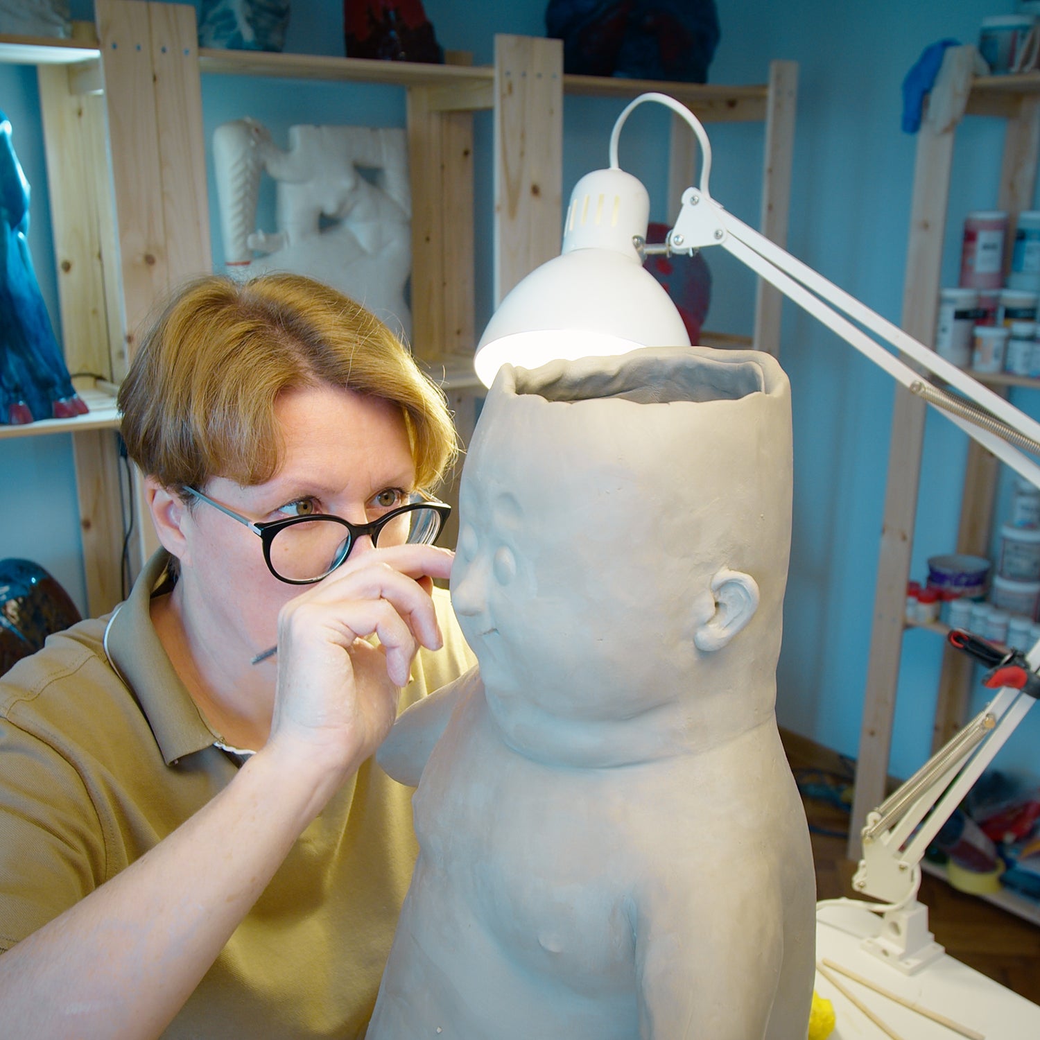 After this, I paint it with colored glazes and fire the sculpture again. At each stage there is a risk that the sculpture will crack and you will have to do everything again.