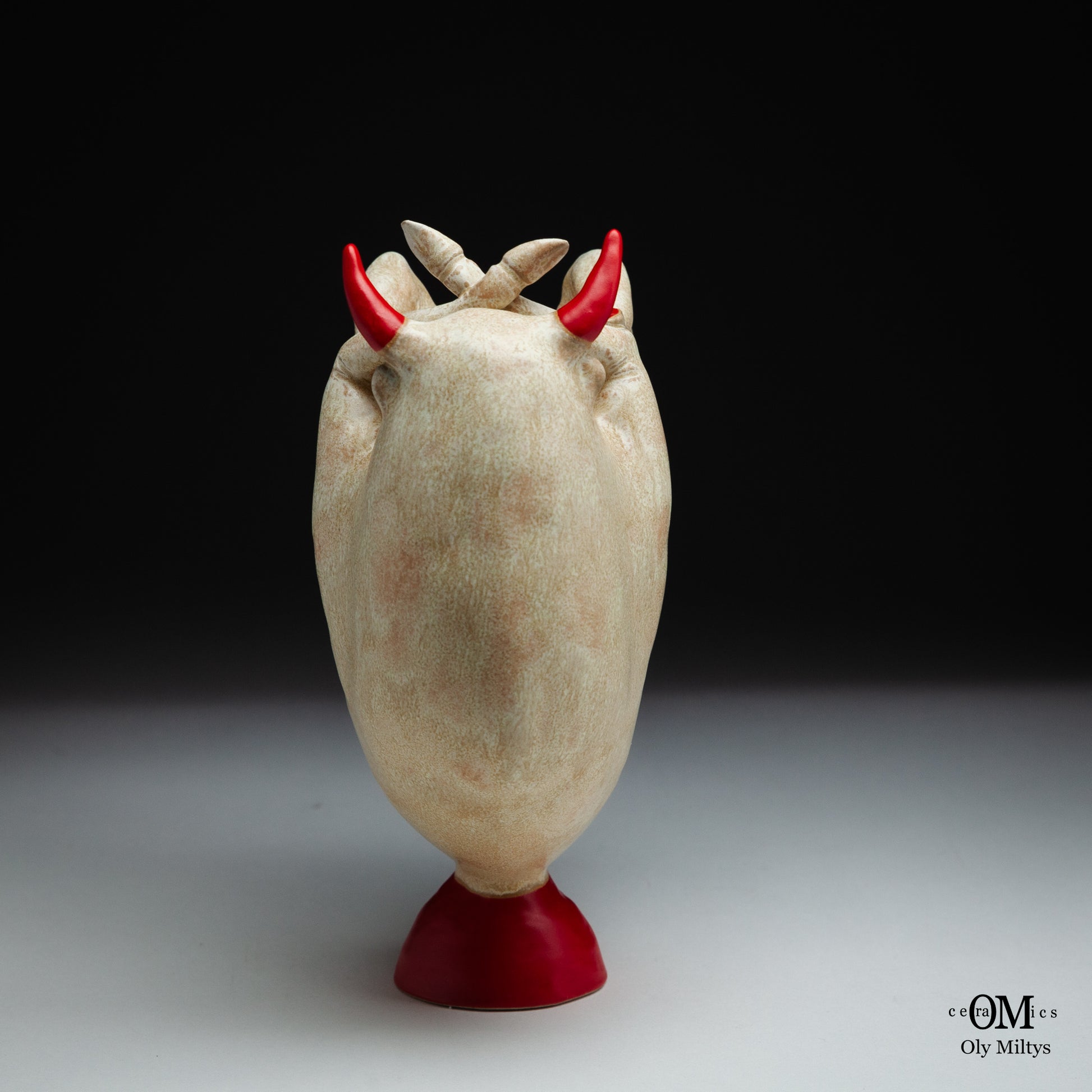 The bull "Pastel" symbolizes the transition from inner peace to the awakening of strength. Its soft pastel shades create a sense of quiet stability and solitude, while the bright red elements of the horns and base highlight a sudden burst of energy and confidence that can emerge even in the most peaceful and calm moments.