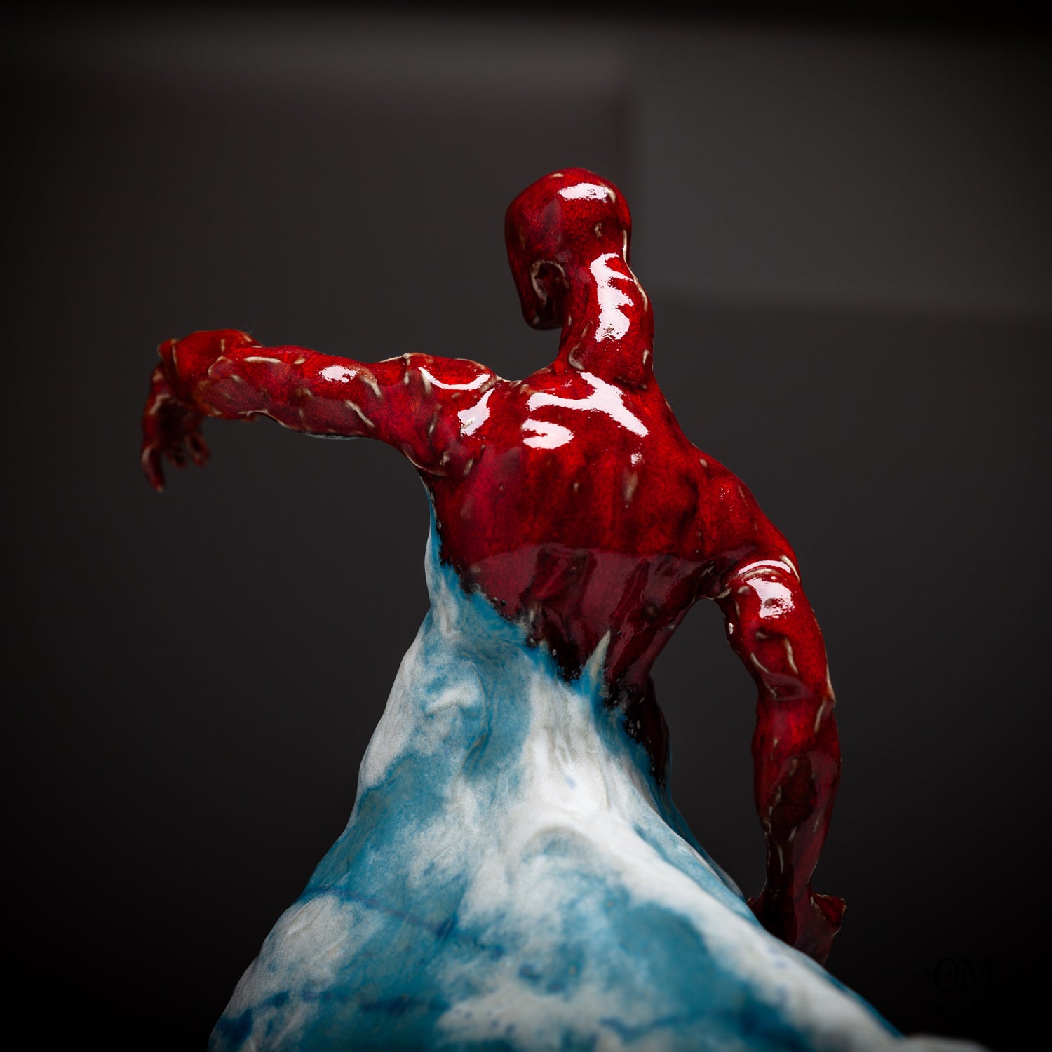 Skulptura "Korida" nas uvodi u složen svet strasti i kontradikcija. Ovde se čovek i bik, dva večna simbola borbe i opstanka, prepliću u jednoj formi, stvarajući snažnu sliku unutrašnjeg konflikta i dvojnosti. Ovo delo utelovljuje ideju da su naši unutrašnji sukobi podjednako dinamični i složeni kao i spoljašnji konflikti. Jasan kontrast crvene i plave nije samo estetski izbor, već i dubok simbolički gest. Crvena predstavlja energiju, strast, agresiju, dok plava utelovljuje mir, dubinu i unutrašnji svet. Ove boje, kao i oblici, sudaraju se i spajaju, izazivajući osećanje stalne borbe, ali i nužne ravnoteže. Ova skulptura, poput zamrznute scene koride, poziva nas da se zamislimo o svojoj vlastitoj prirodi i o tome šta postajemo u trenucima unutrašnjeg sukoba. "Korida" je poziv na razmišljanje o balansu i harmoniji koje svi tražimo, uprkos silama koje nas vuku u suprotne pravce.